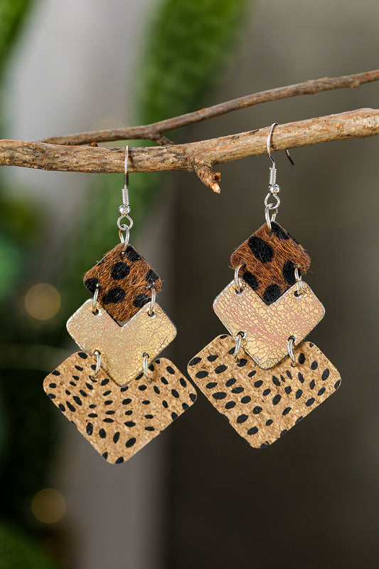 Multicolour Rhinestone Edge Leopard Print Heart Shape Earrings