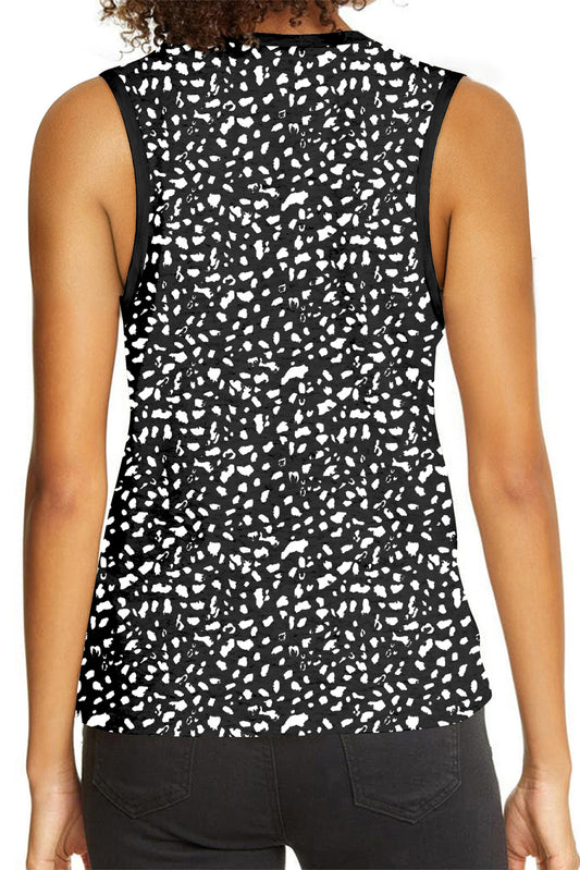 Black Leopard Mesh Puff Sleeve Patchwork Slim Fit Top