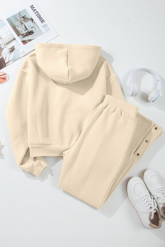 Parchment Solid Color Hoodie and High Waist Pants Two Piece Activewear