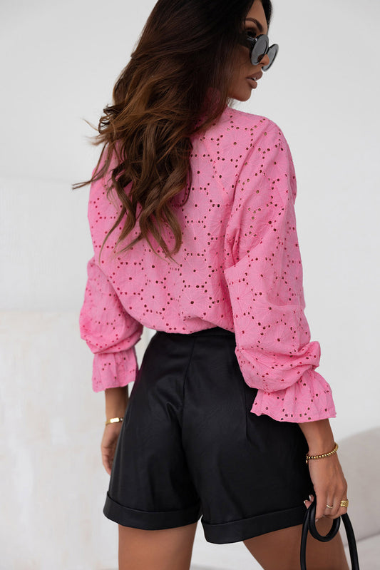 Pink Plus Size Floral Print Ruffled Sleeve Frilled Neck Blouse
