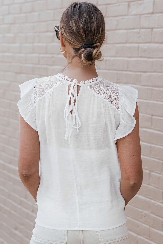 Beige Lace Crochet Patchwork Flutter Sleeve Babydoll Blouse