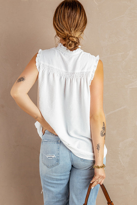 White Frilled Tank Top with Buttons