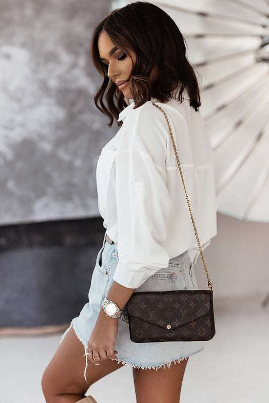 White Solid Asymmetric V Neck Long Sleeve Satin Blouse