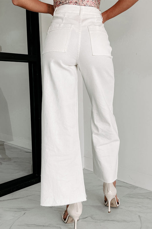 Light French Beige Acid Washed High Rise Cropped Wide Leg Jeans