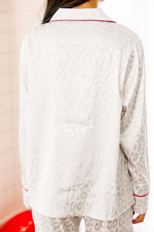 White Leopard Print Long Sleeve and Pants Pajamas Set