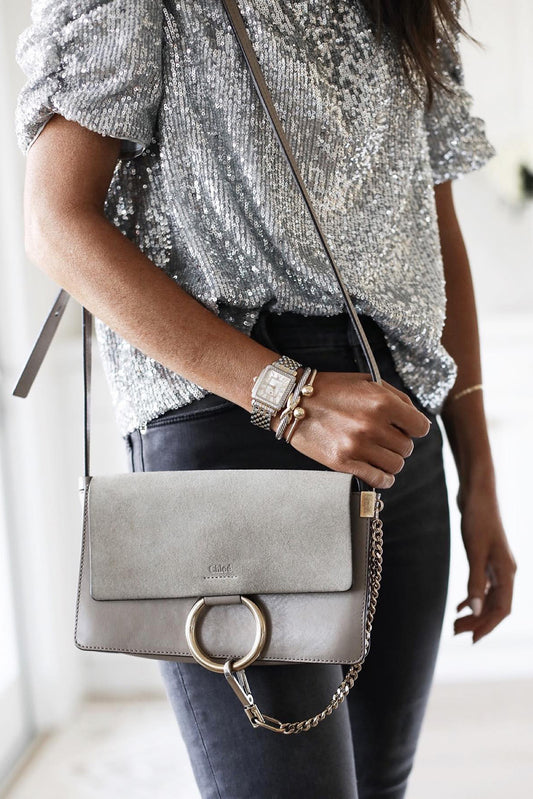 Silvery Short Ruched Puff Sleeve Sequin Top