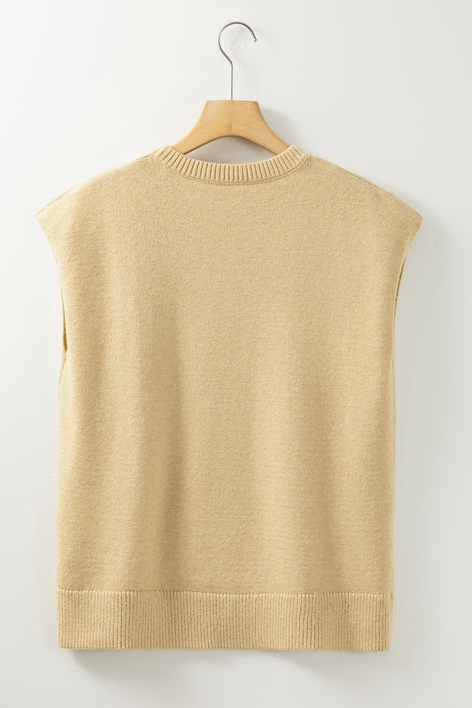 Apricot V Neck Textured Hollow-out Sweater Vest