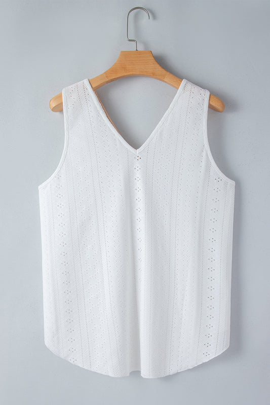 White Plus Size Guipure V Neck Eyelet Lace Tank Top