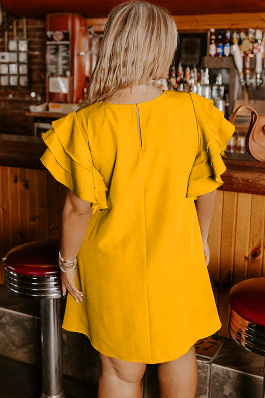 Grapefruit Orange Tiered Ruffled Sleeve Plus Size Mini Dress