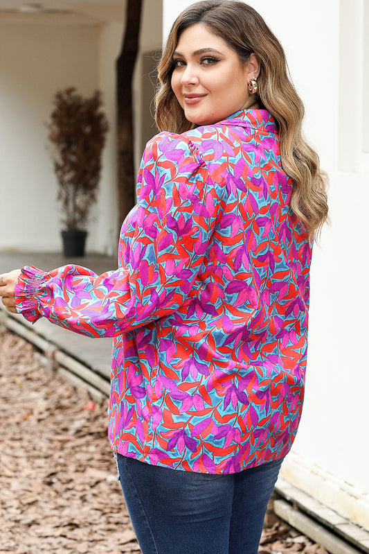 Multicolour Plus Size Floral Print Ruffled Puff Sleeve Shirt