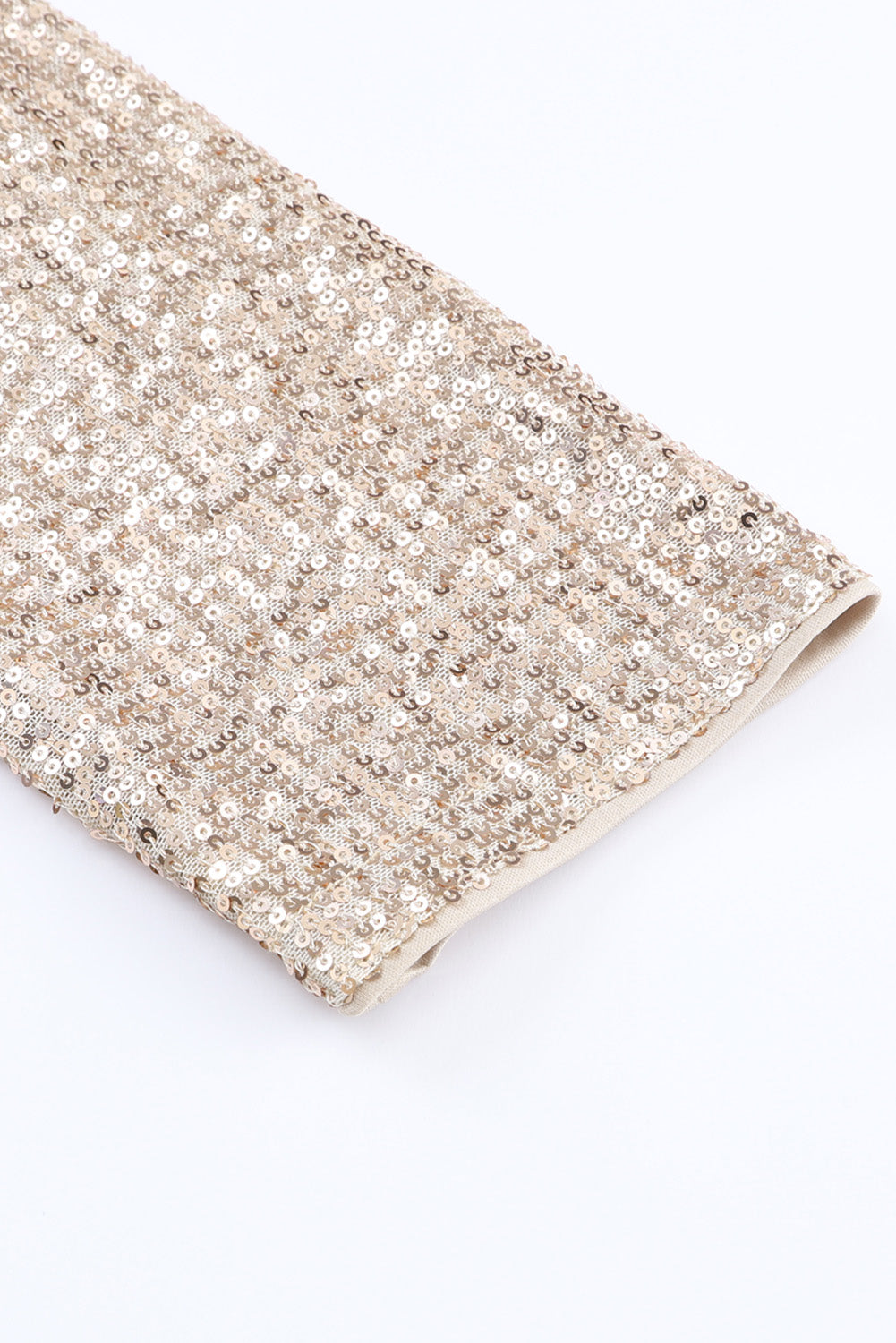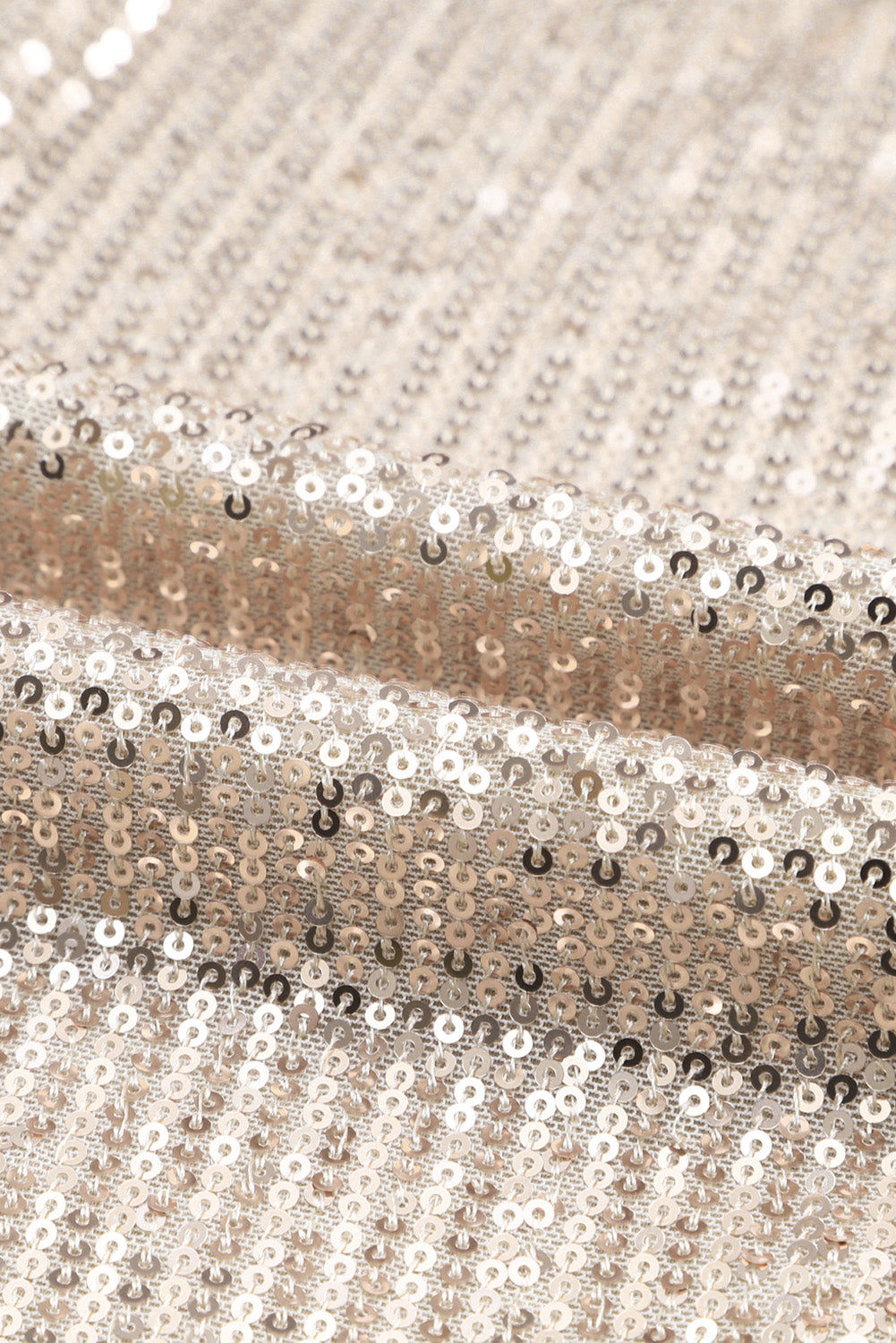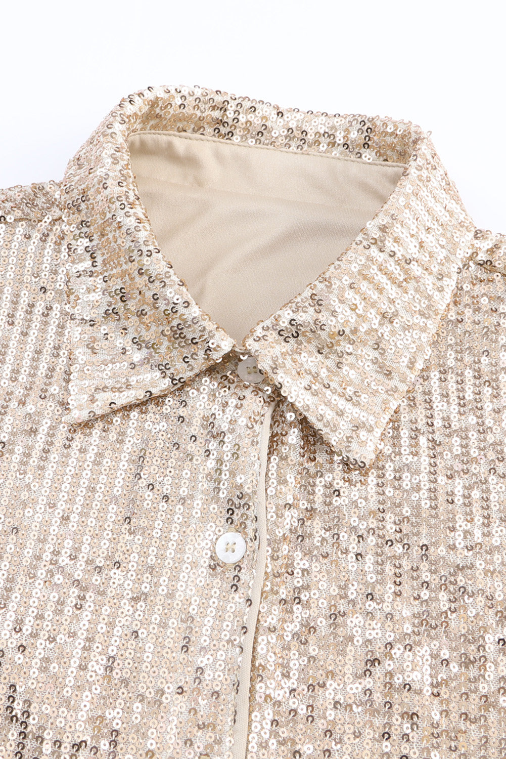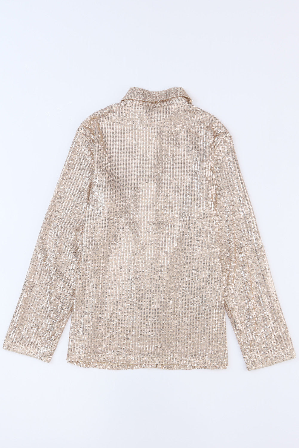 Apricot Sequin Collared Bust Pocket Buttoned Shirt