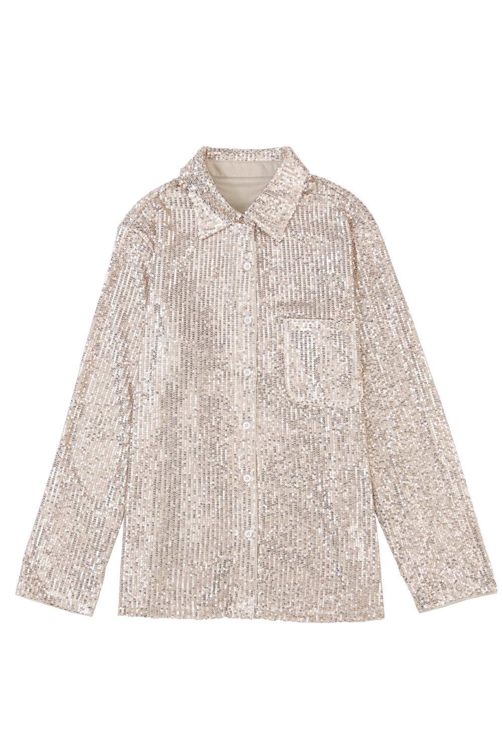- This Sequin Collared Bust Pocket Buttoned Shirt is extremely sparkling to catch the eyes