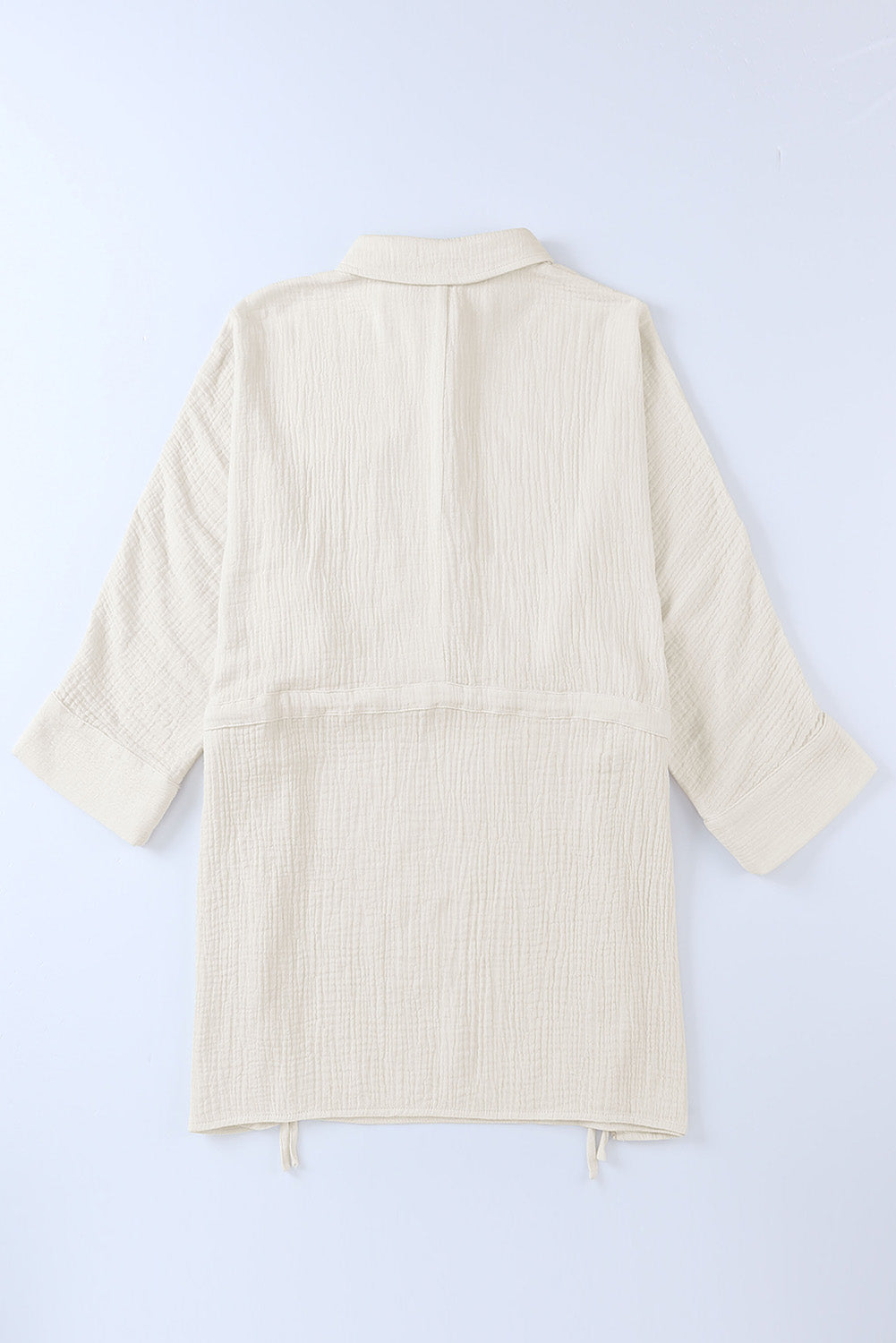 - Drawstring waist can be tightened up toshow wearers’ waistline