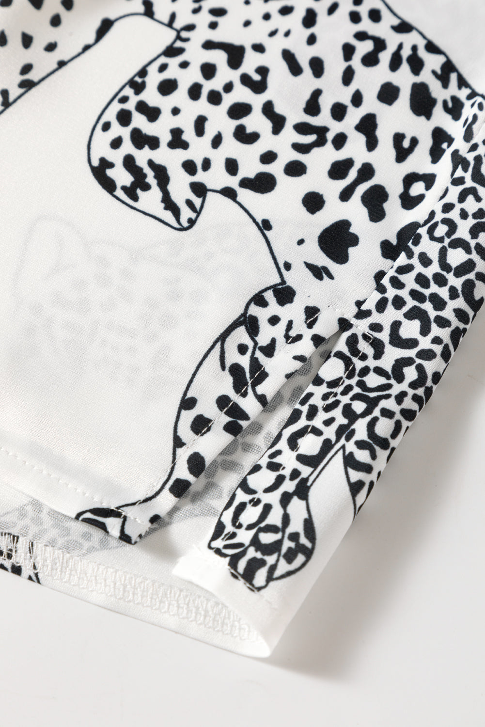 Beige Cheetah Print Buttoned Half Sleeve Shirt