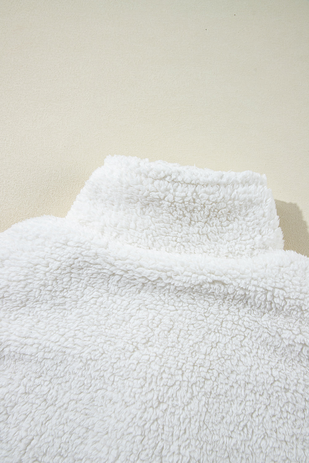 Beige Faux Fur Button Pocketed Lapel Collar Jacket