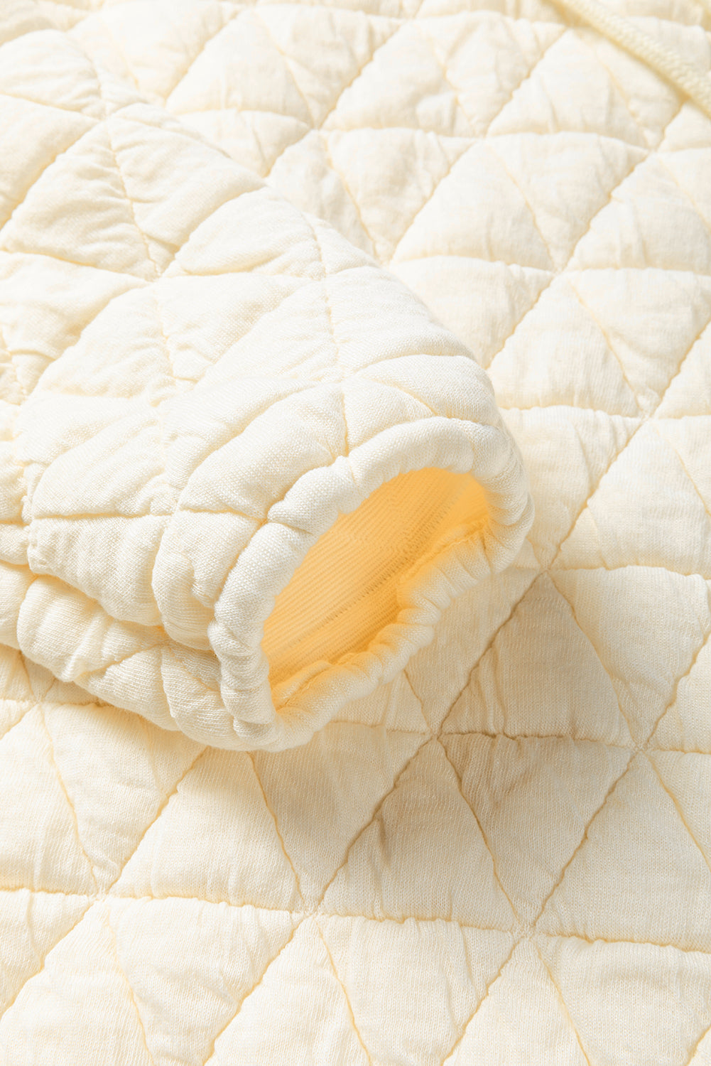Beige Quilted V Neck Hoodie Drawstring Shorts Set
