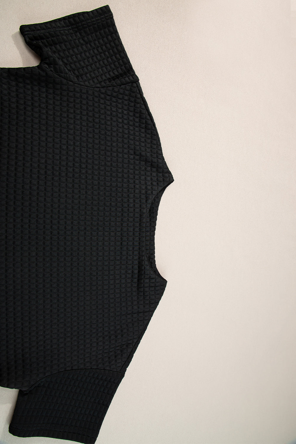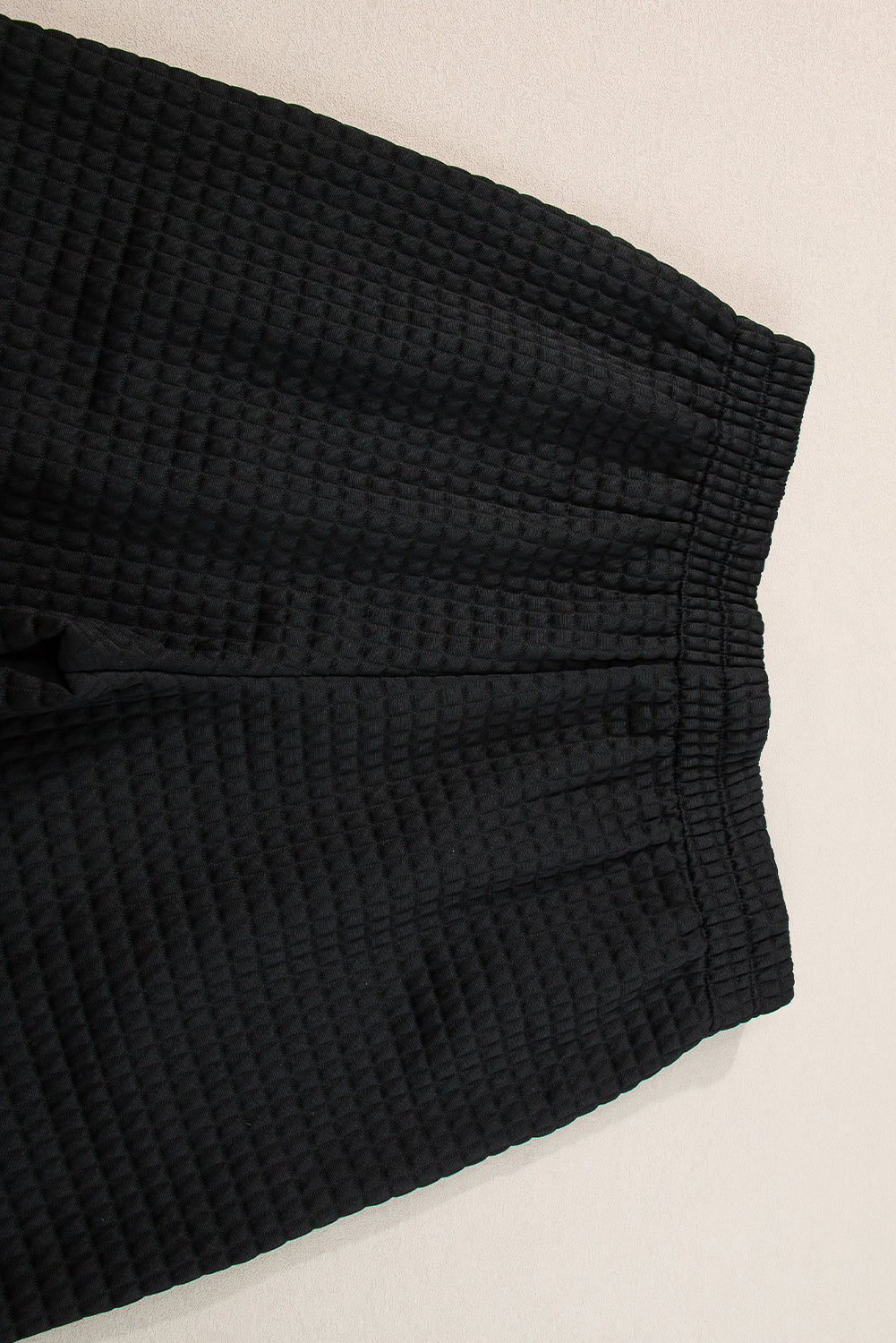 Black Lattice Textured Cropped Tee and Jogger Pants Set