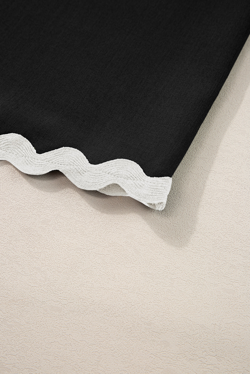 Black Ricrac Trim Tank Top Elastic Waist Shorts Set
