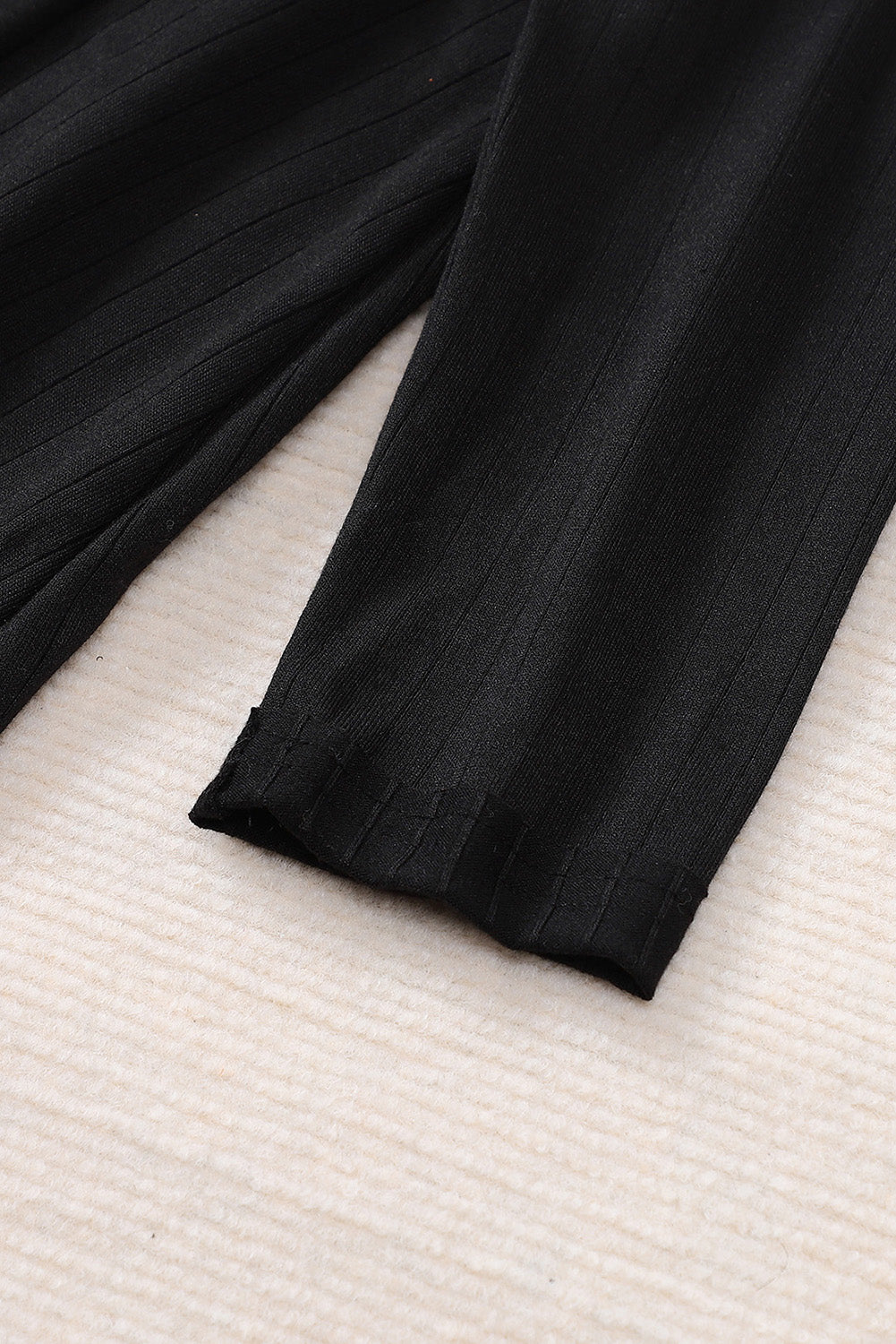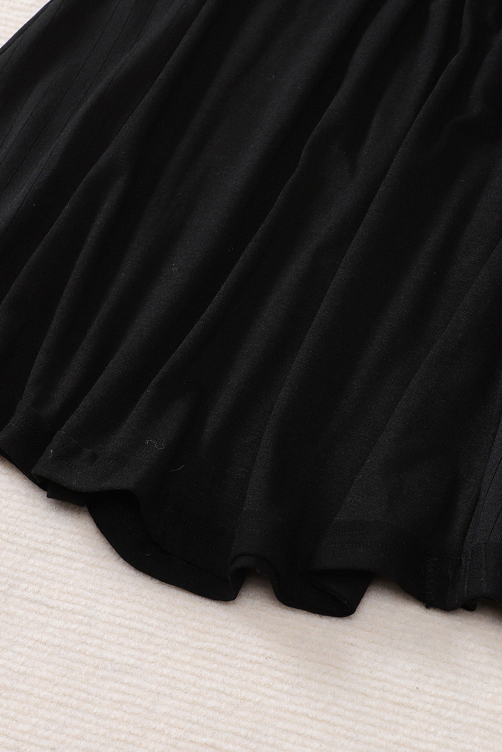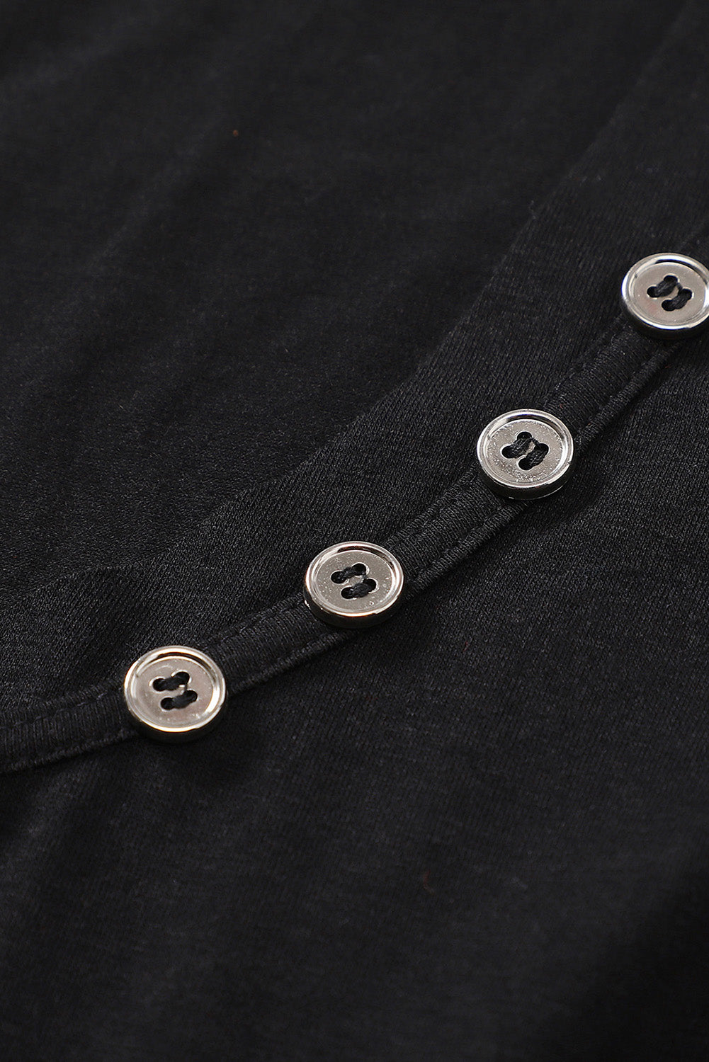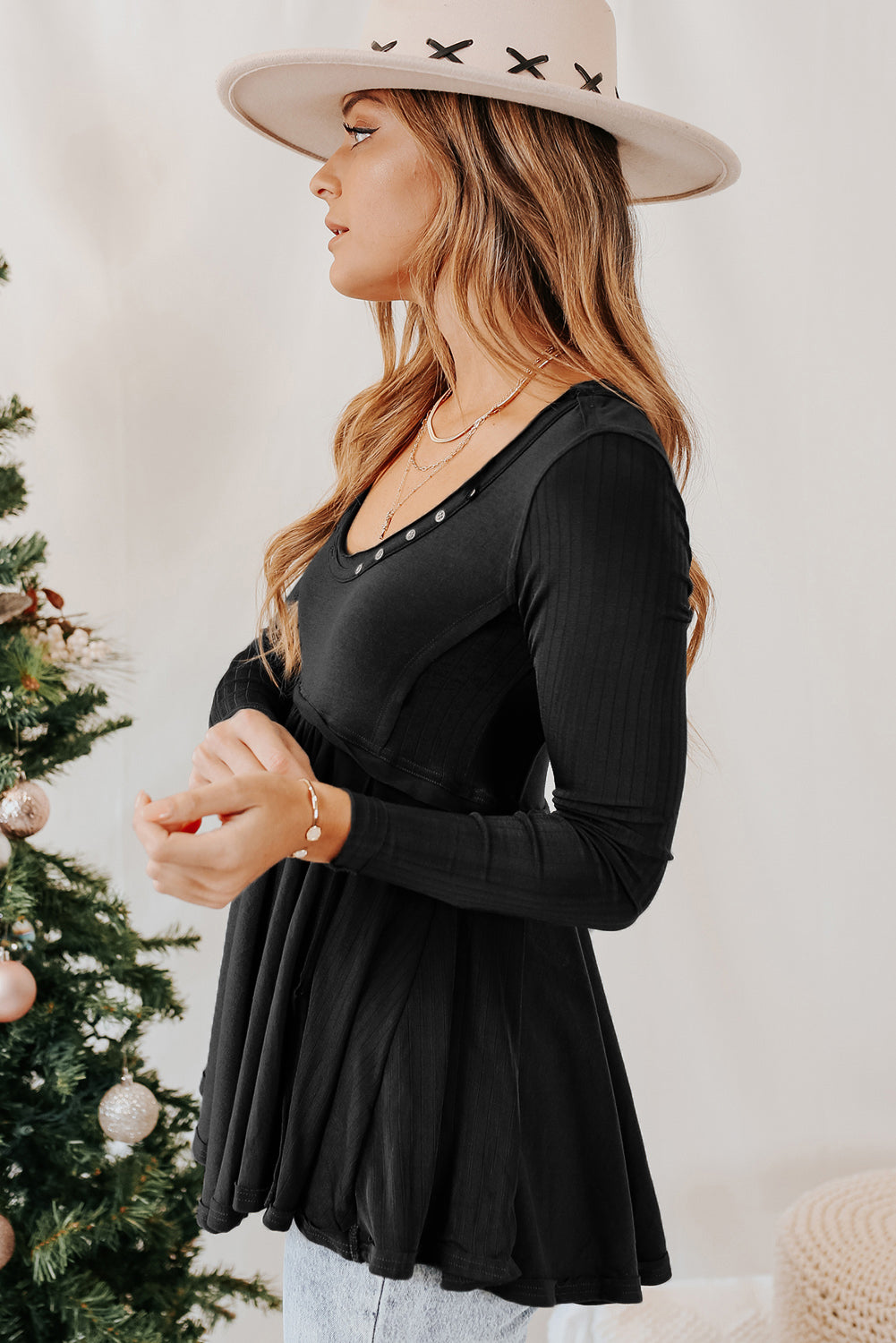 Black Solid Color Buttons Long Sleeve Babydoll Blouse