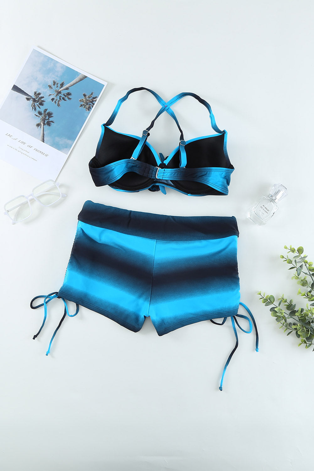 Blue Black Ombre Shading Push Up Bikini and Boardshort