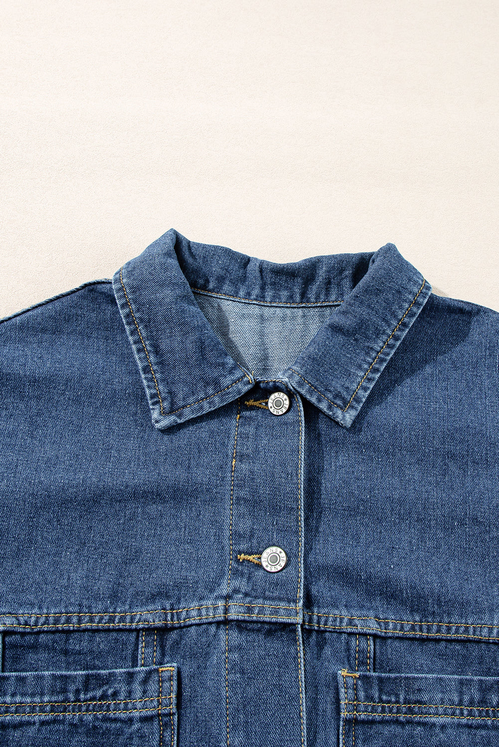 Blue Stripe Washed Oversize Pocketed Denim Jacket