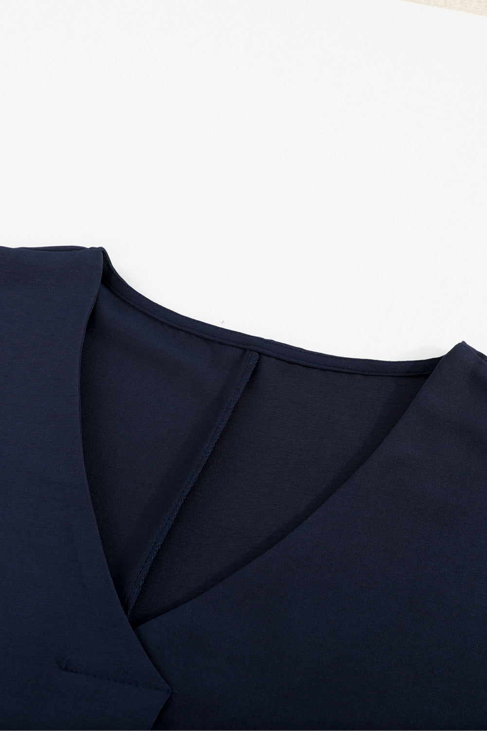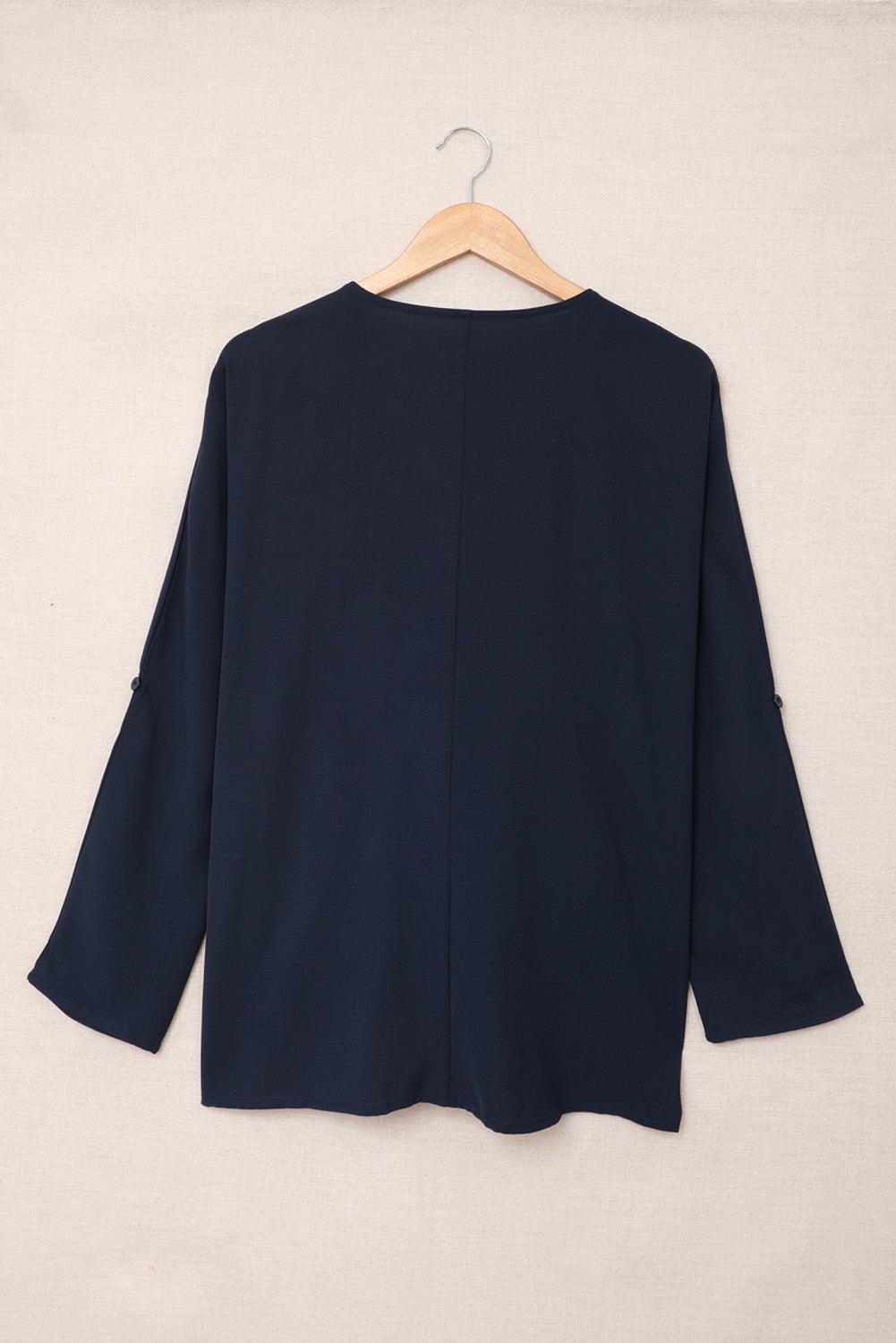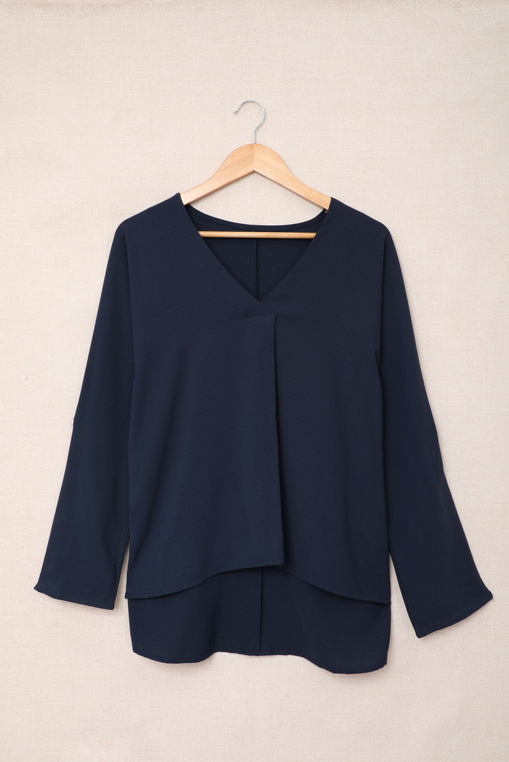 Blue V Neck 3/4 Sleeve High Low Hem Shirt