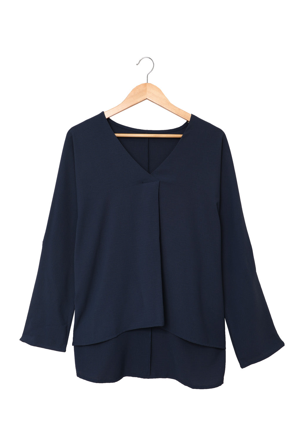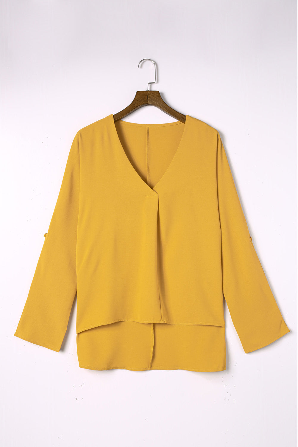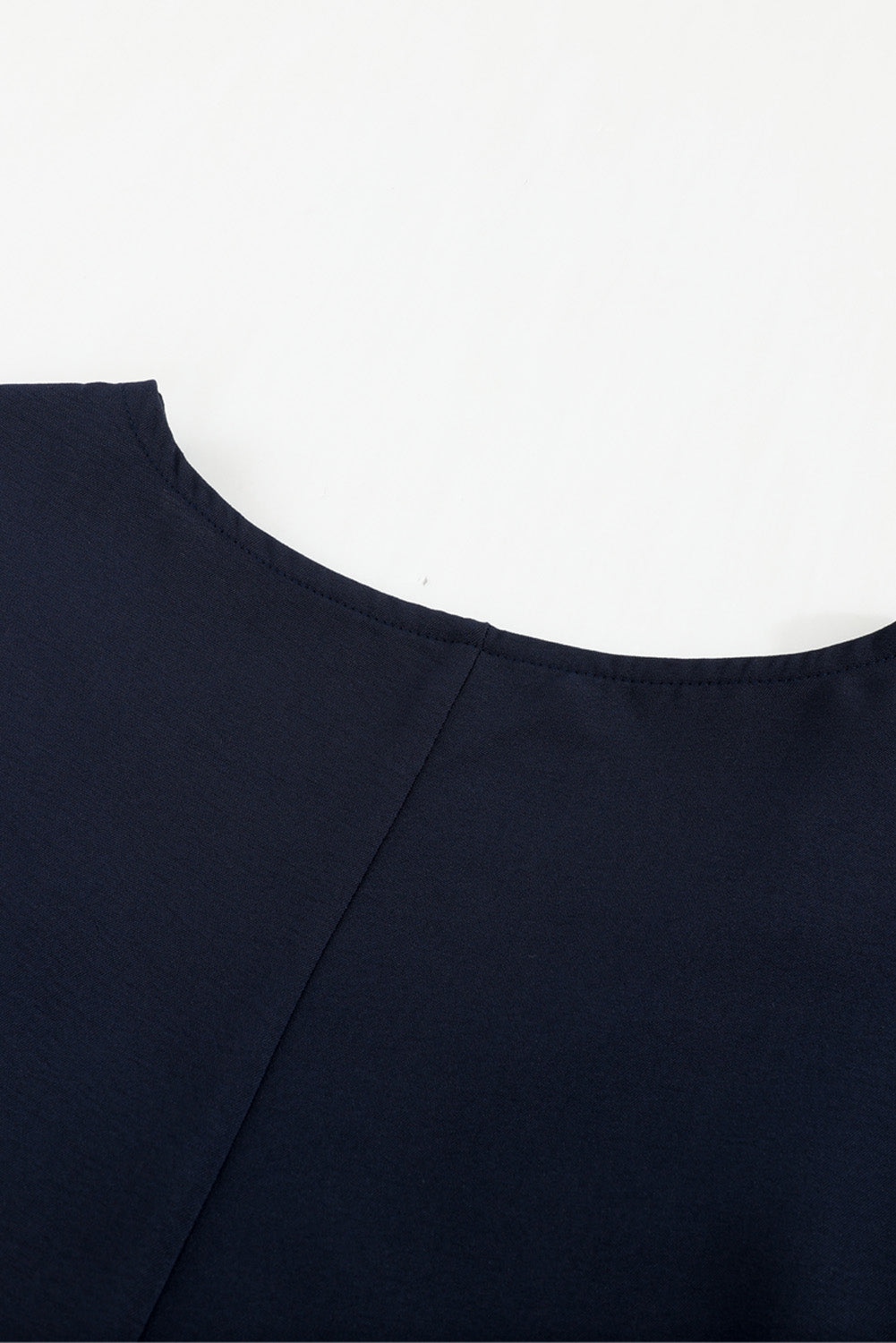 Blue V Neck 3/4 Sleeve High Low Hem Shirt