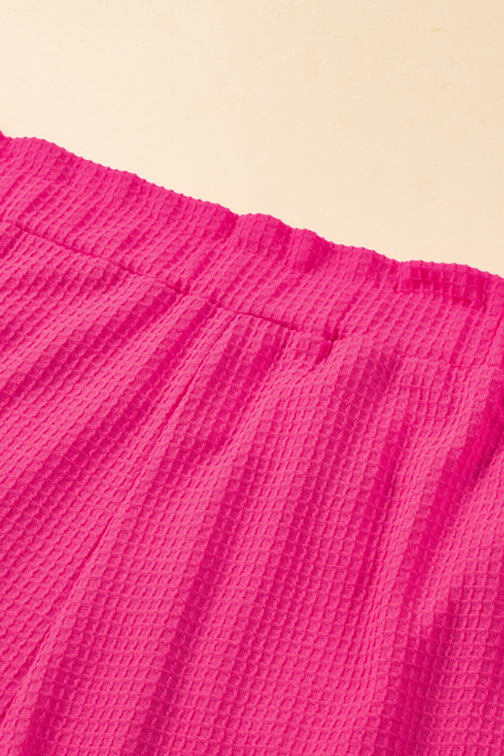 Bright Pink Plus Size Rolled Edge Ruffled Elastic Waist Textured Shorts