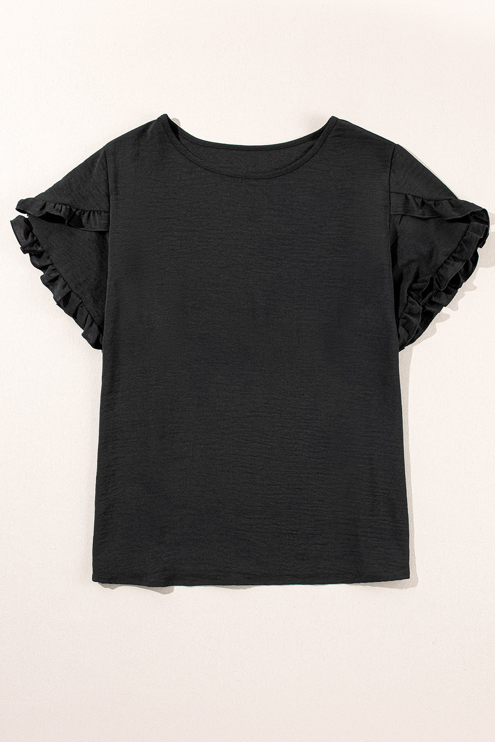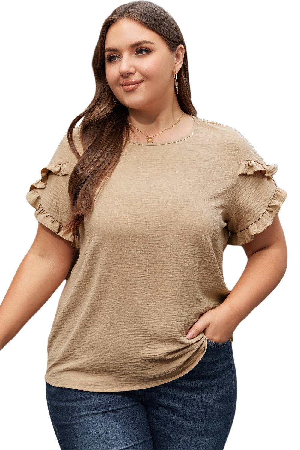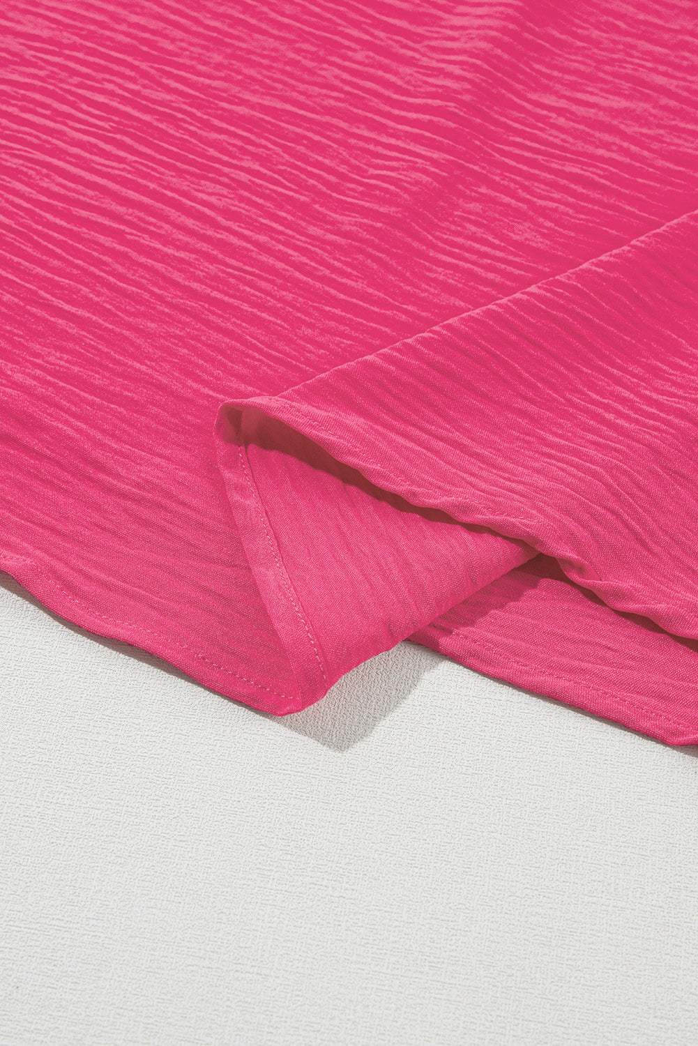 Bright Pink Ruffled Short Sleeve Plus Size Top