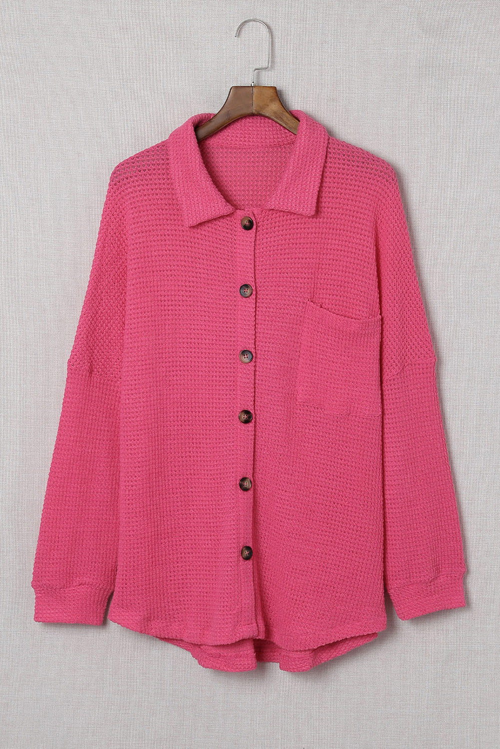 Brown Waffle Knit Button Up Casual Shirt