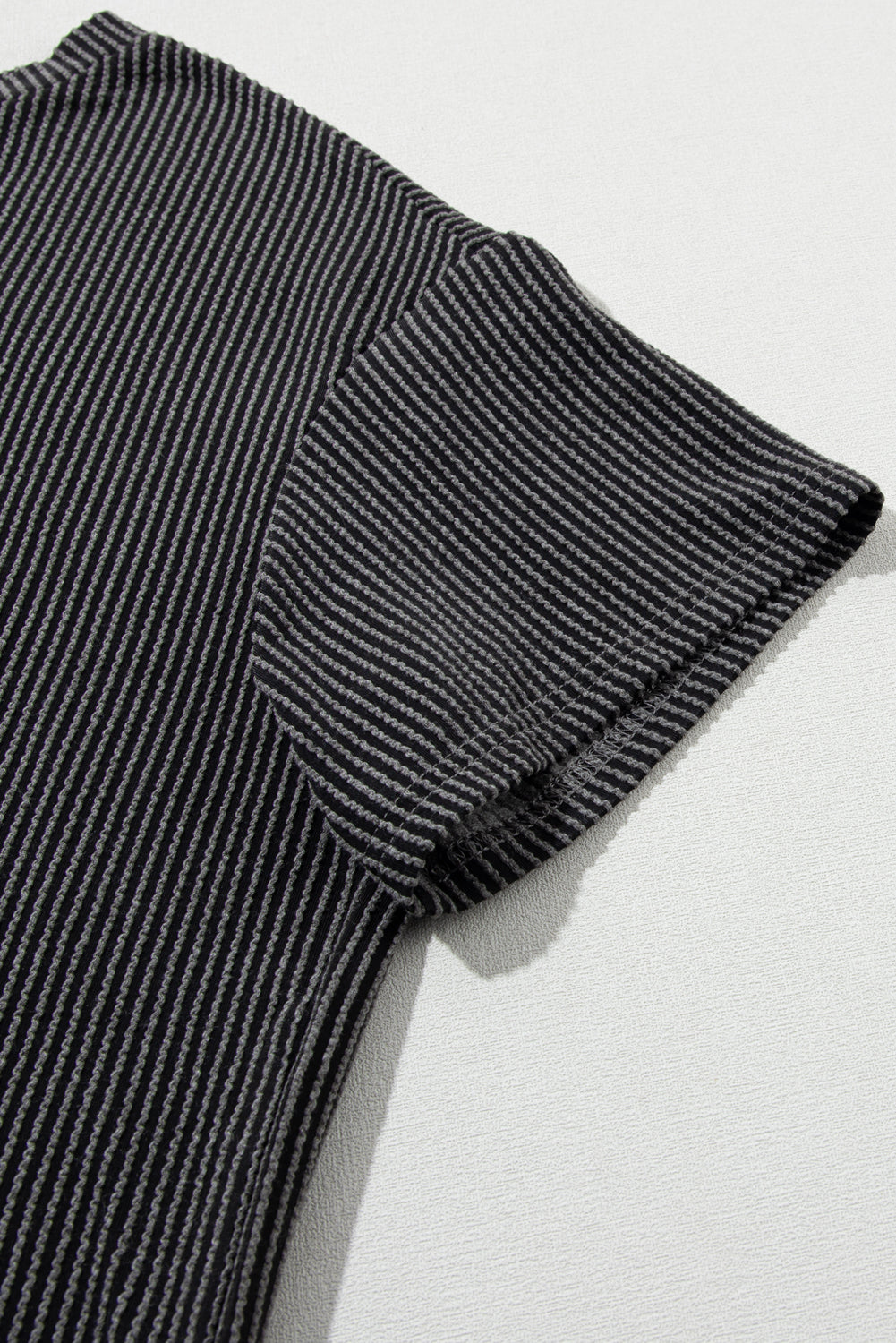 Carbon Grey Ribbed Textured Knit Loose Fit Tee and Shorts Set