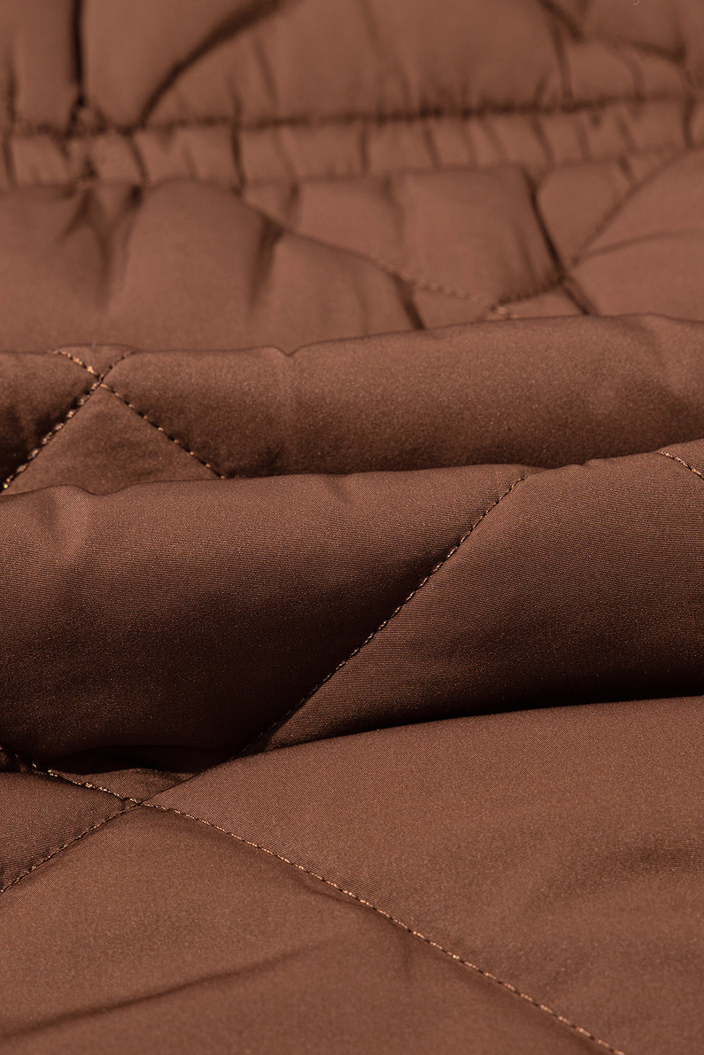 Coffee Longline Quilted Stand Collar Puffer Vest