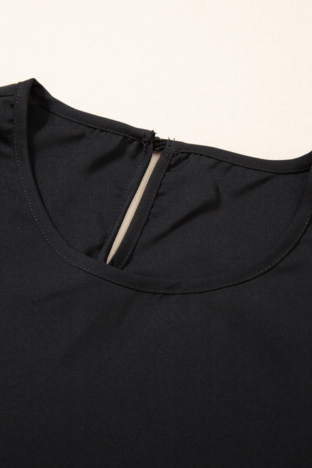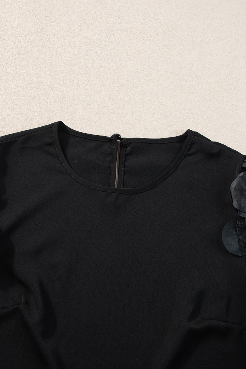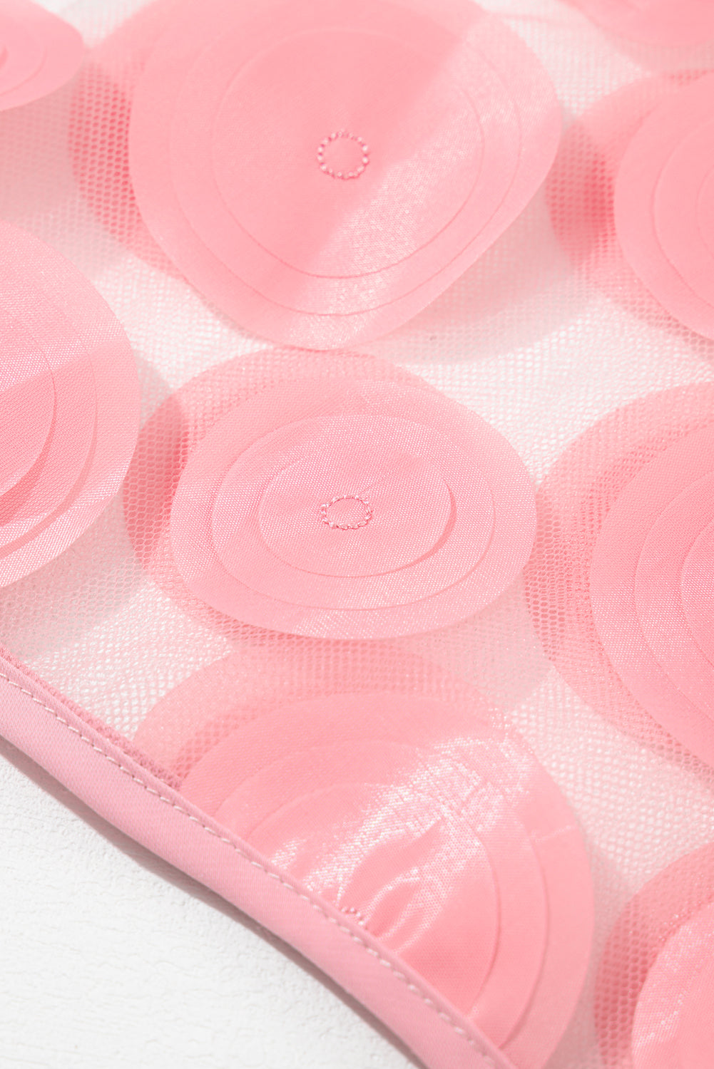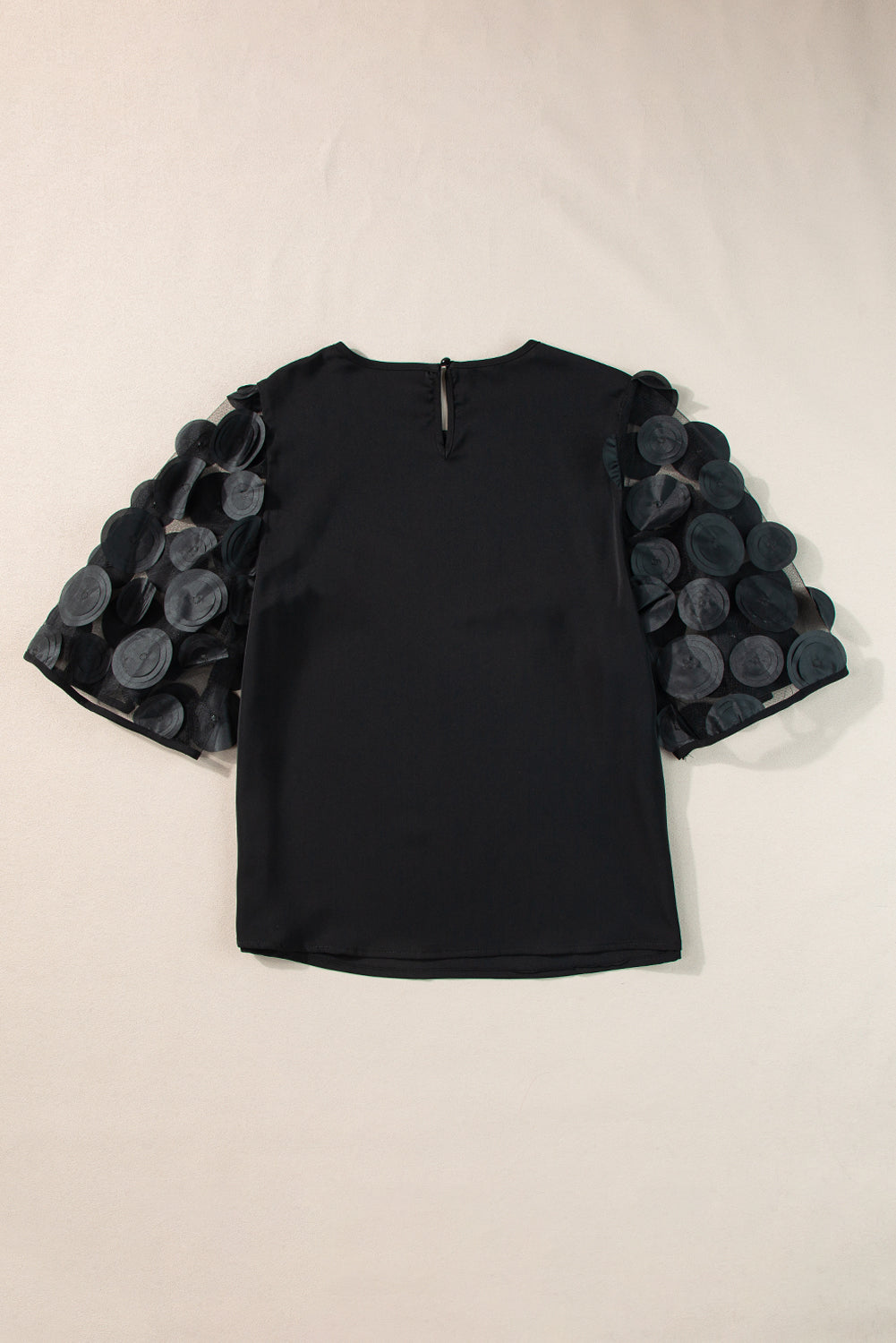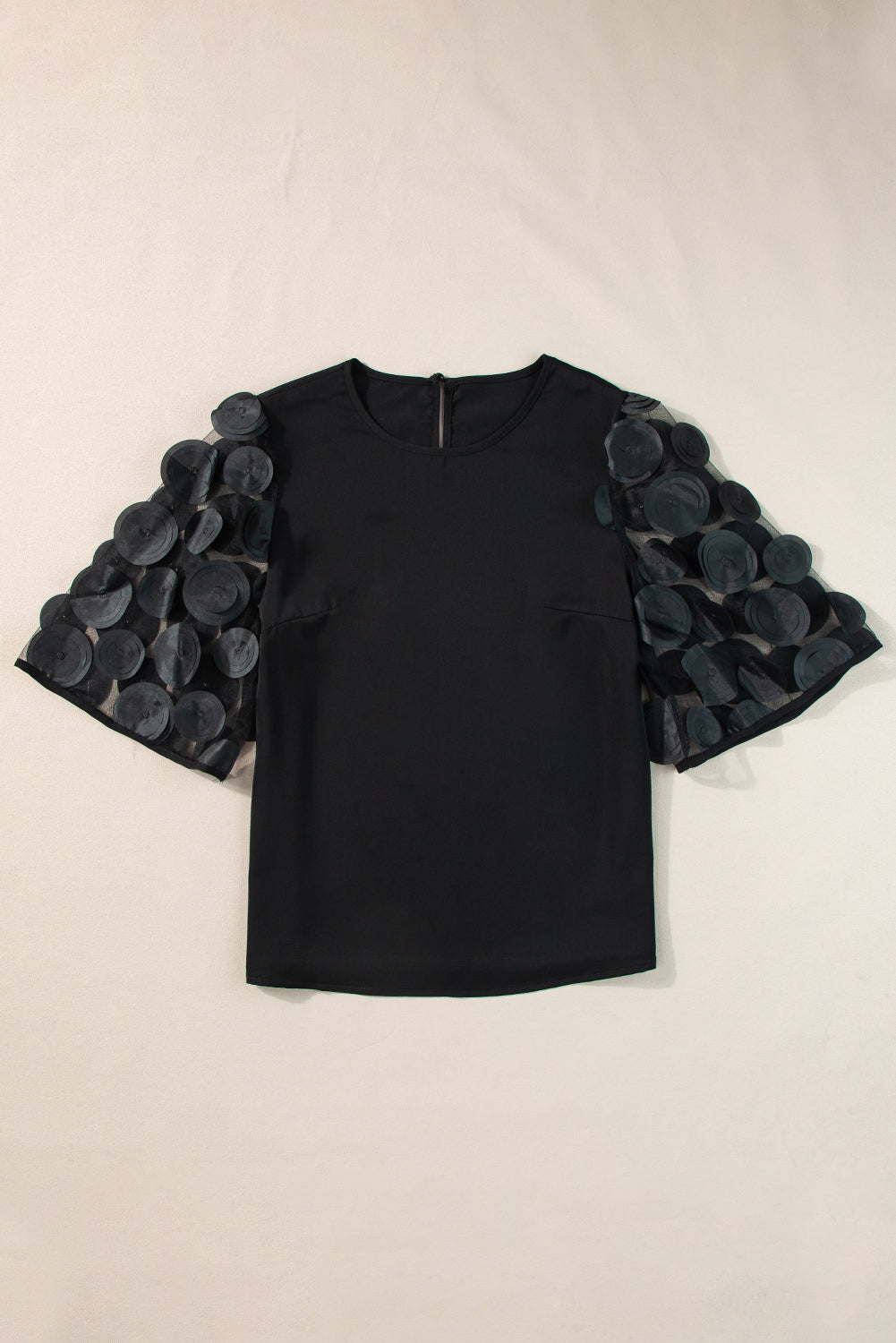 Dusty Pink Contrast Applique Mesh Half Sleeve Blouse