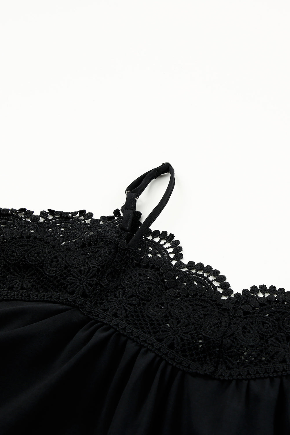 Fiery Red Crochet Neckline Off-shoulder Short Sleeve Top