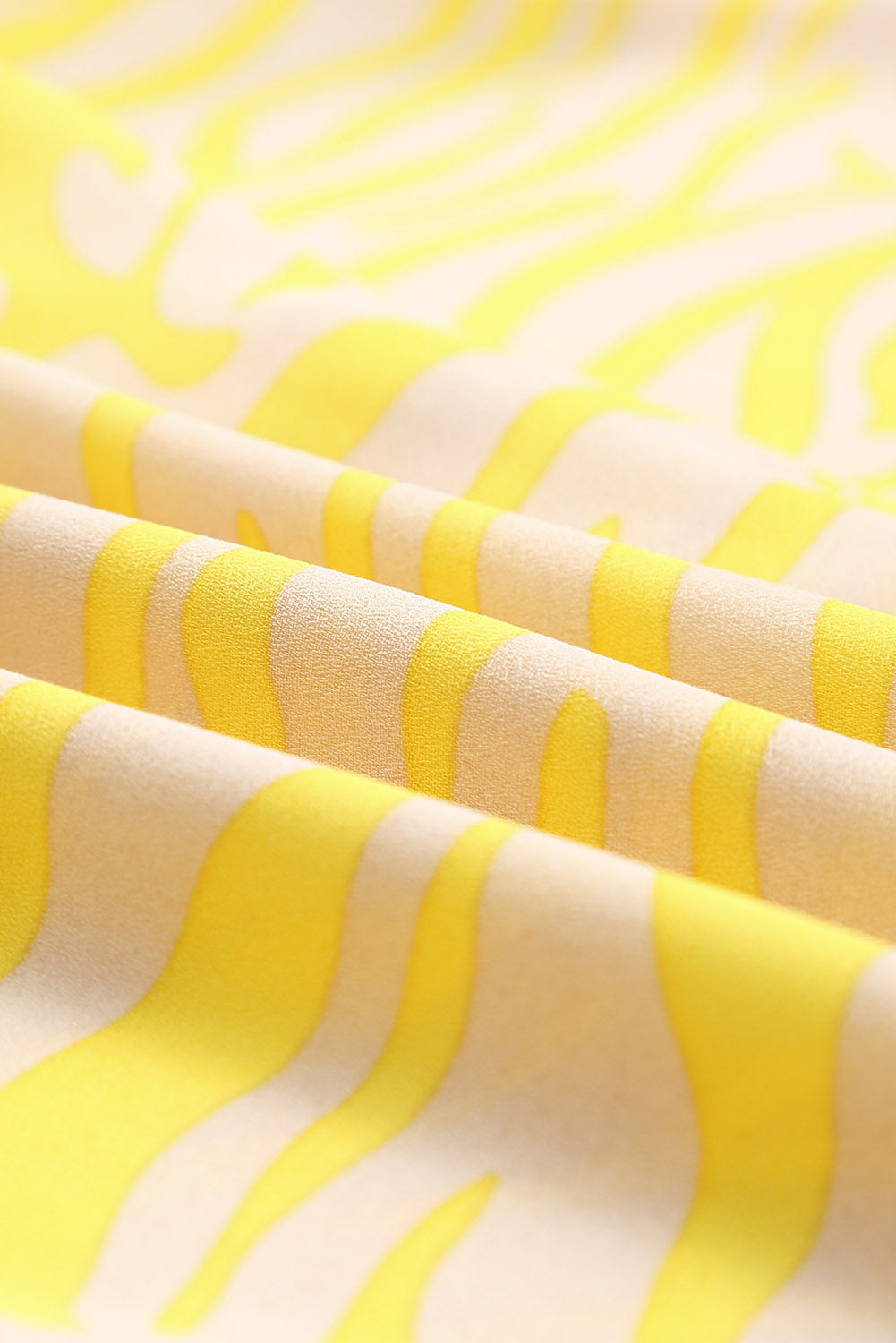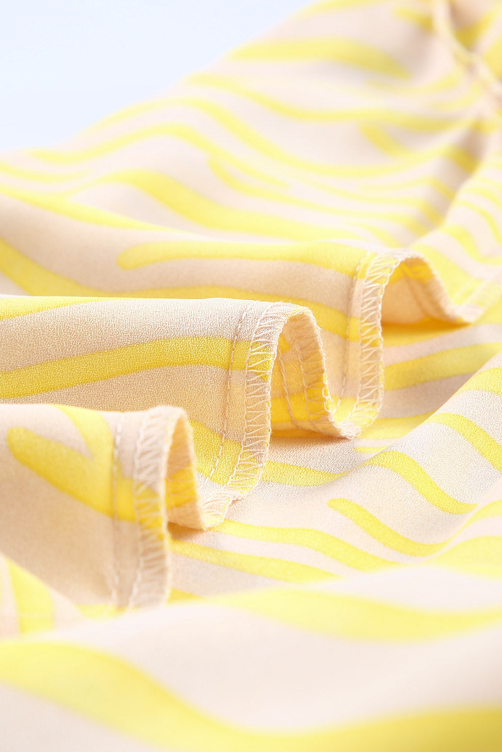 - Modest collar, center-front button opening, long puff sleeves with button cuffs