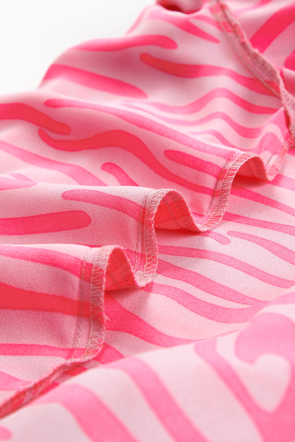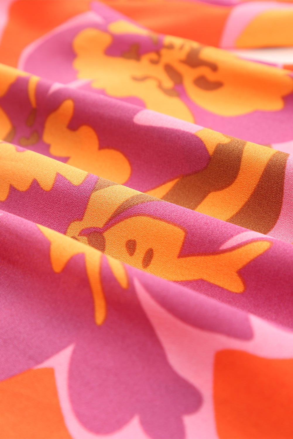 Fiery Red Floral Print Lantern Sleeve Shirt