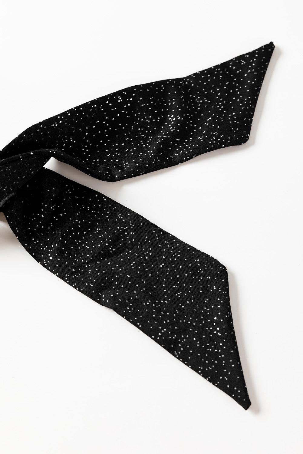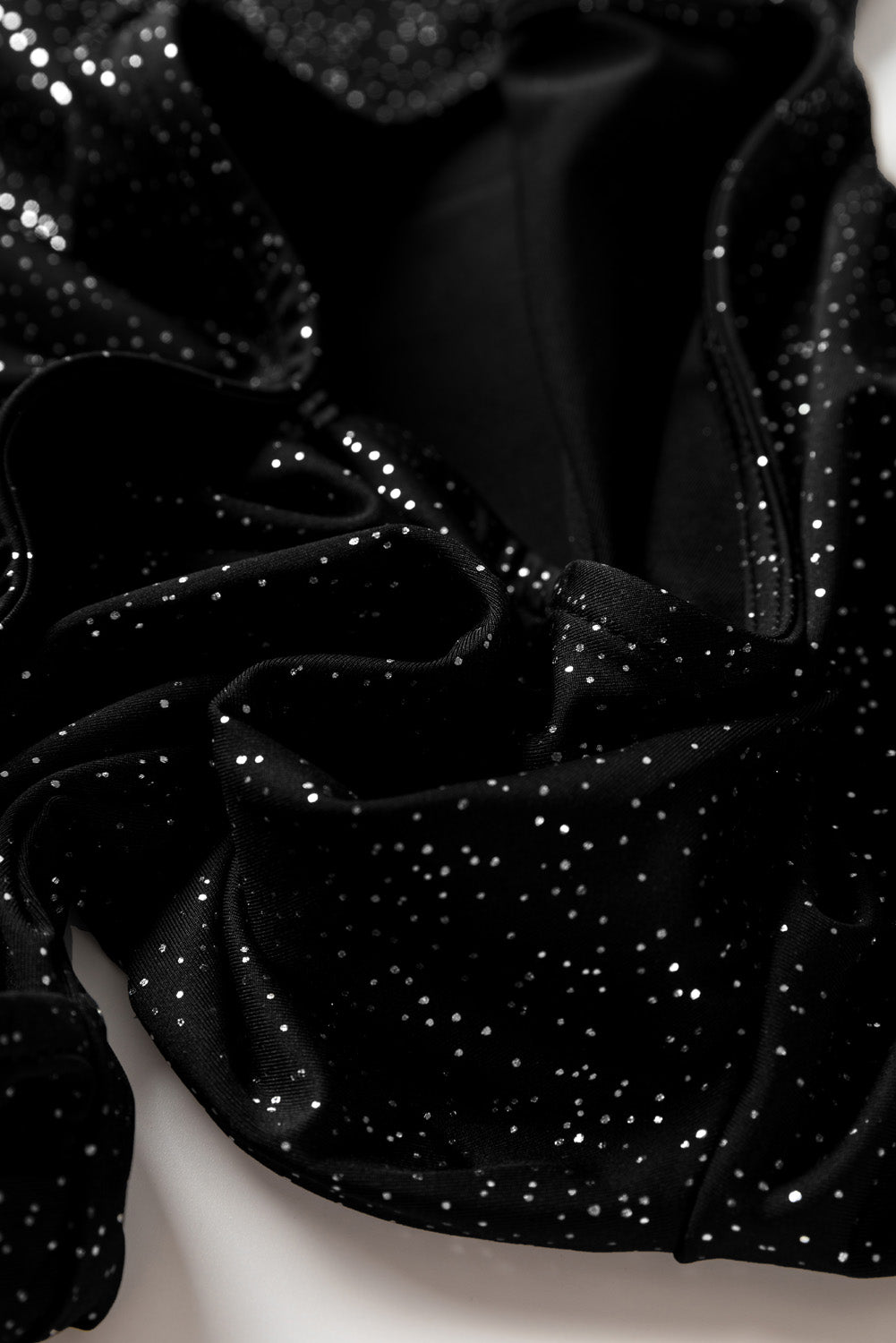Fiery Red Glitter Wrap V Neck Tie Hem Puff Sleeve Blouse