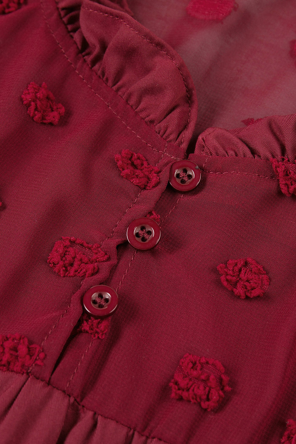 Fiery Red Ruffled Swiss Dot Mesh Yoke Tank Top