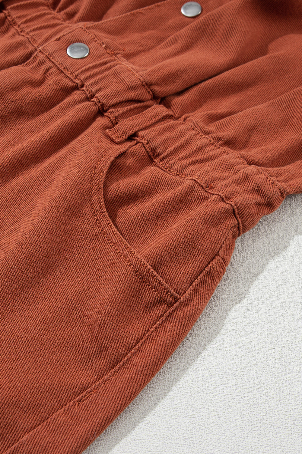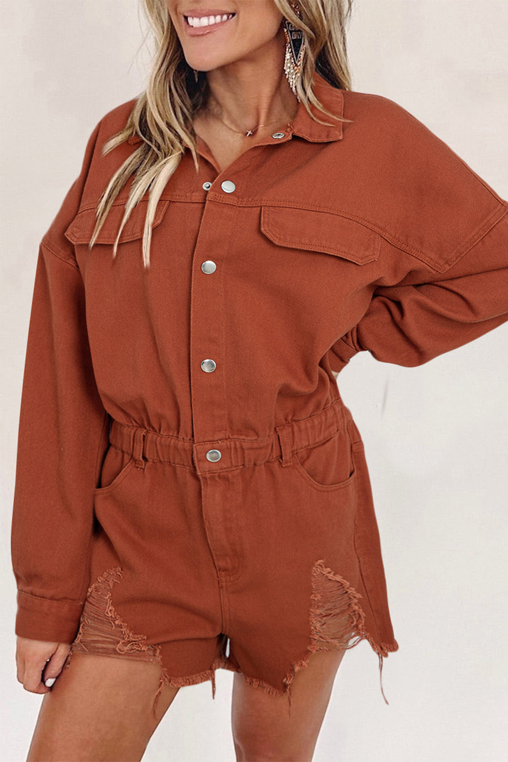 Gold Flame Long Sleeve Snap Buttons Distressed Denim Romper
