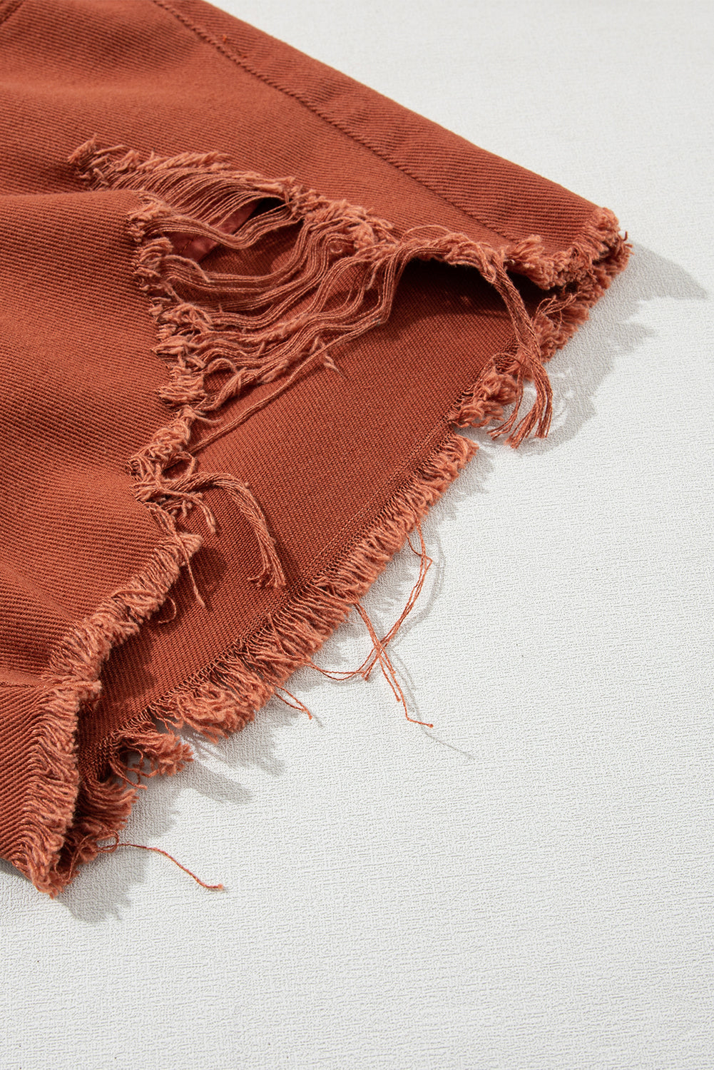 The distressed hem adds a trendy, edgy touch to the classic denim look