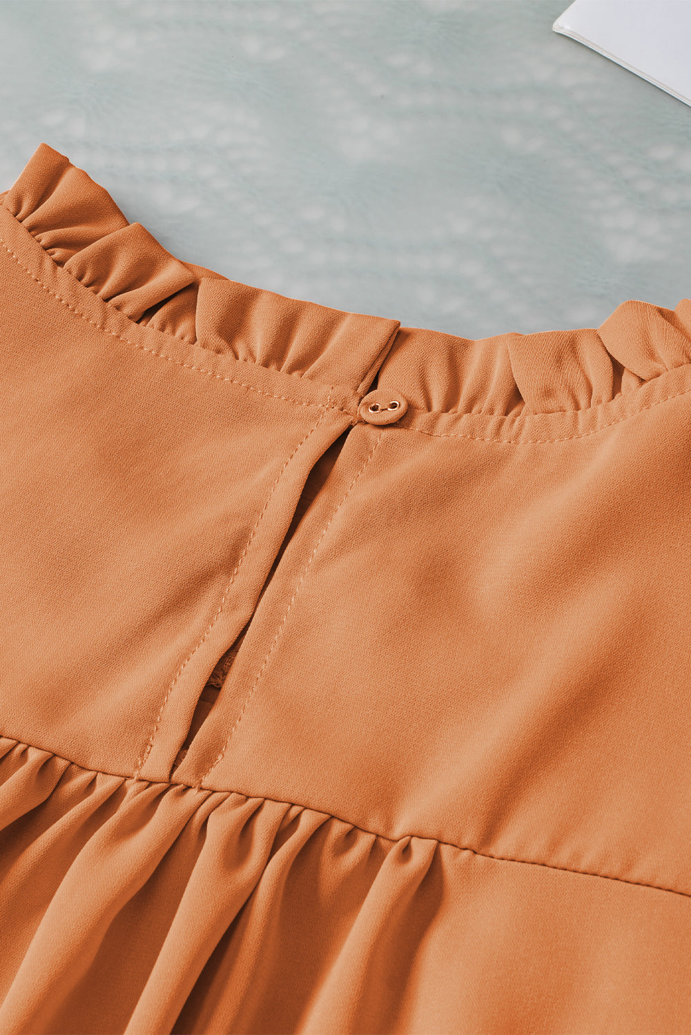 Grapefruit Orange Smocked Ruffle Sleeve Blouse