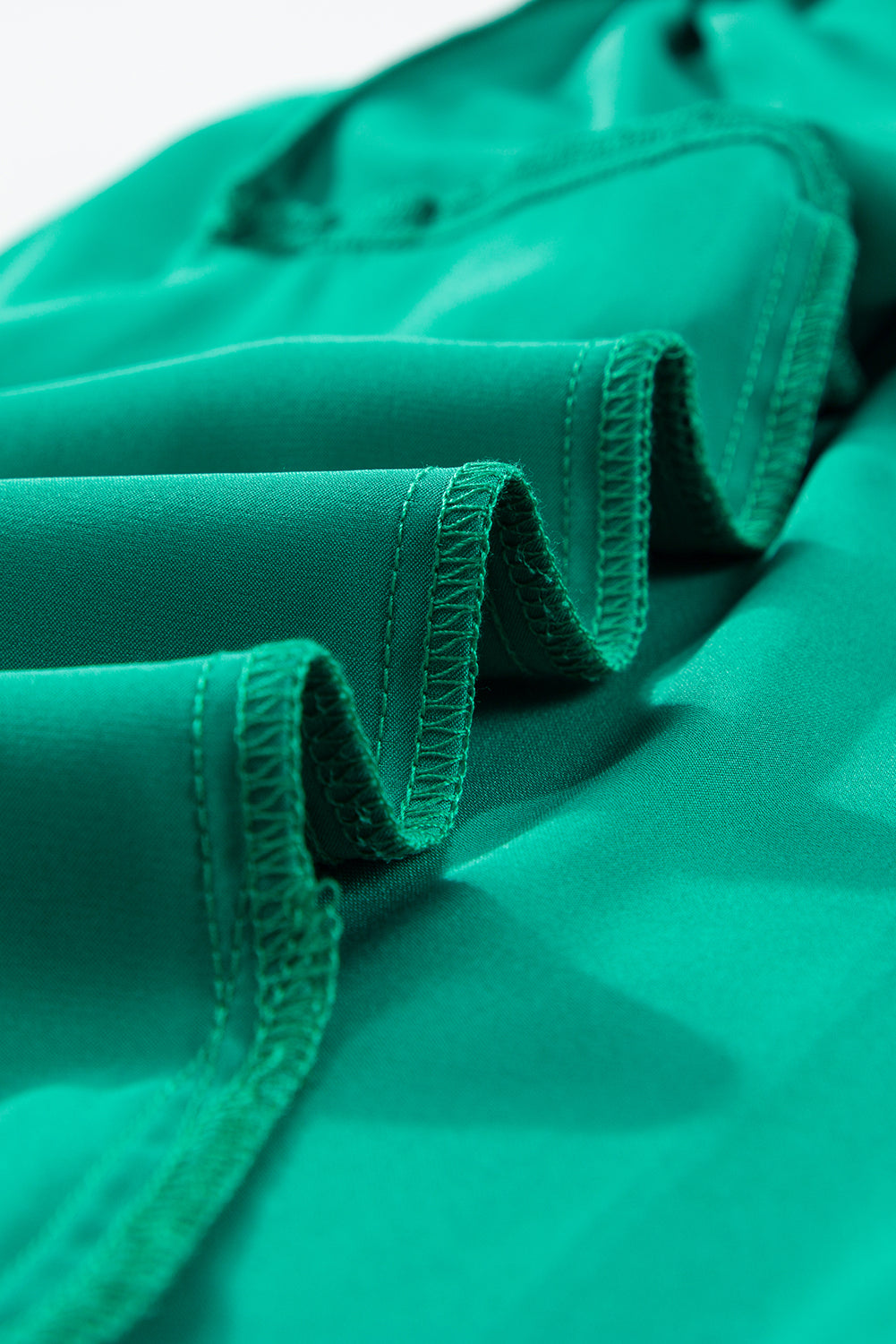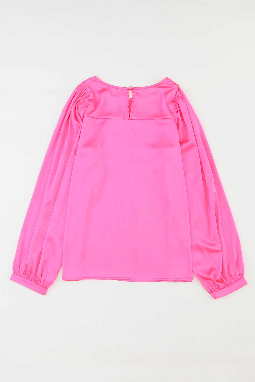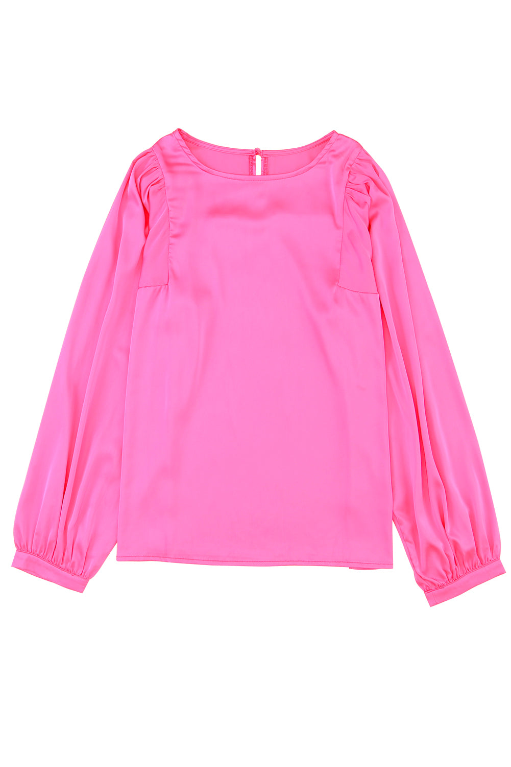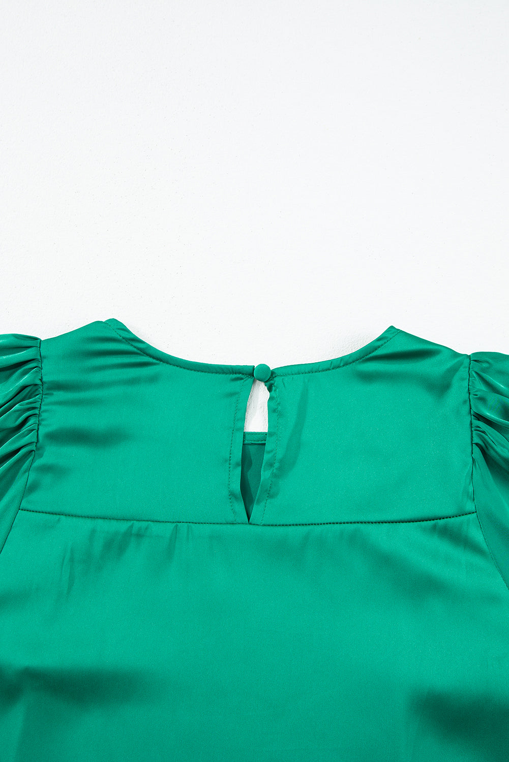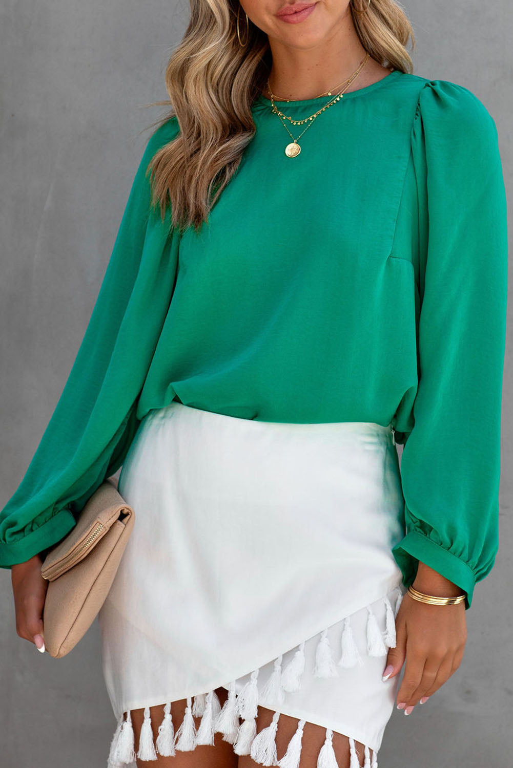 Green Satin Puff Long Sleeve Crewneck Blouse