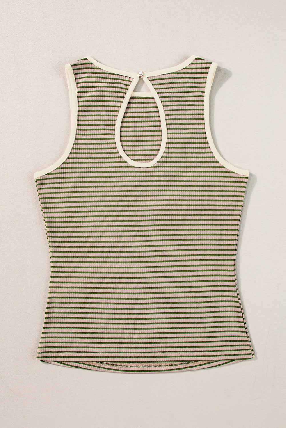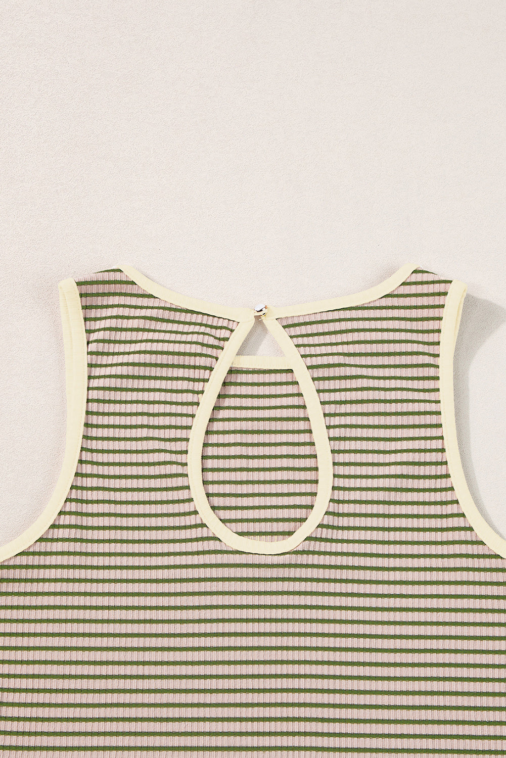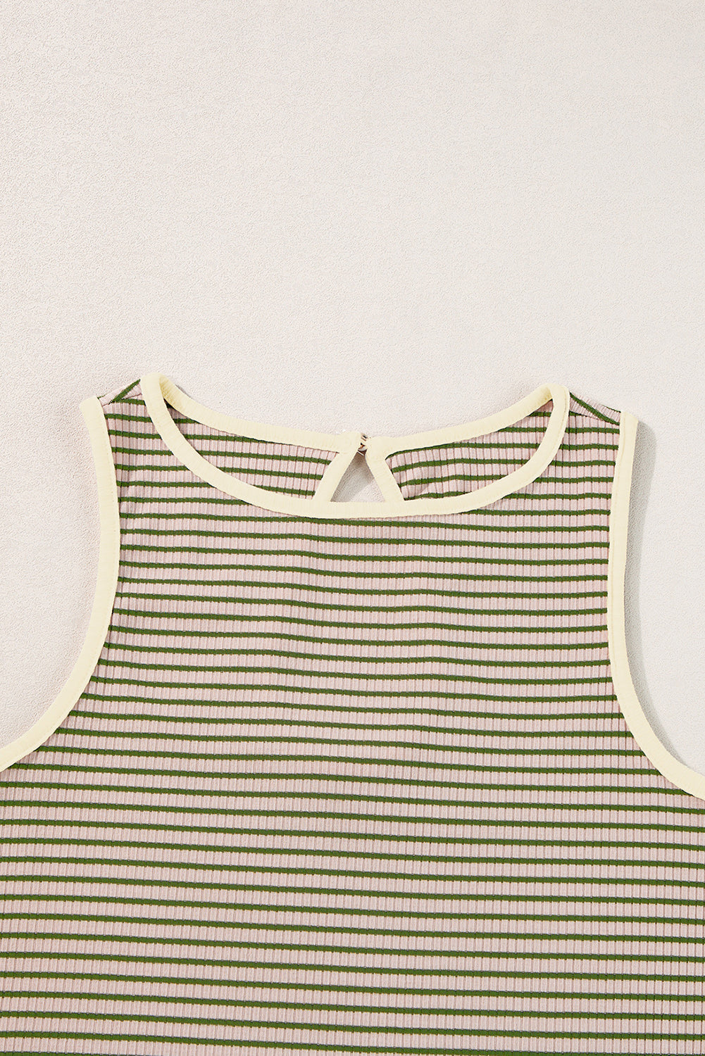 Green Stripe Striped Print Ribbed Knit Sleeveless Top