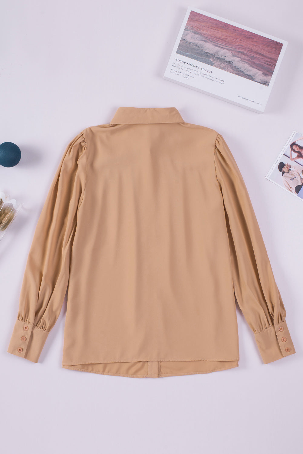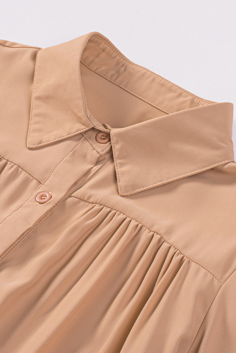 Khaki Solid Button-up Loose Long Sleeve Shirt