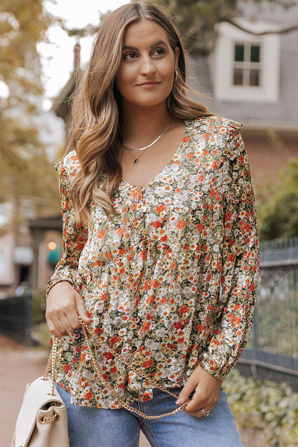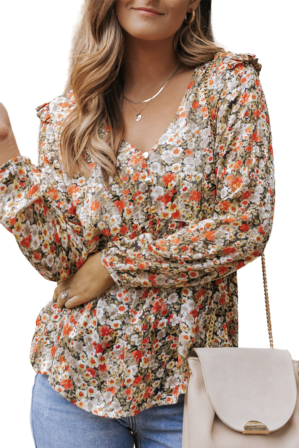 - This blouse with all over flower print is gorgeous and graceful