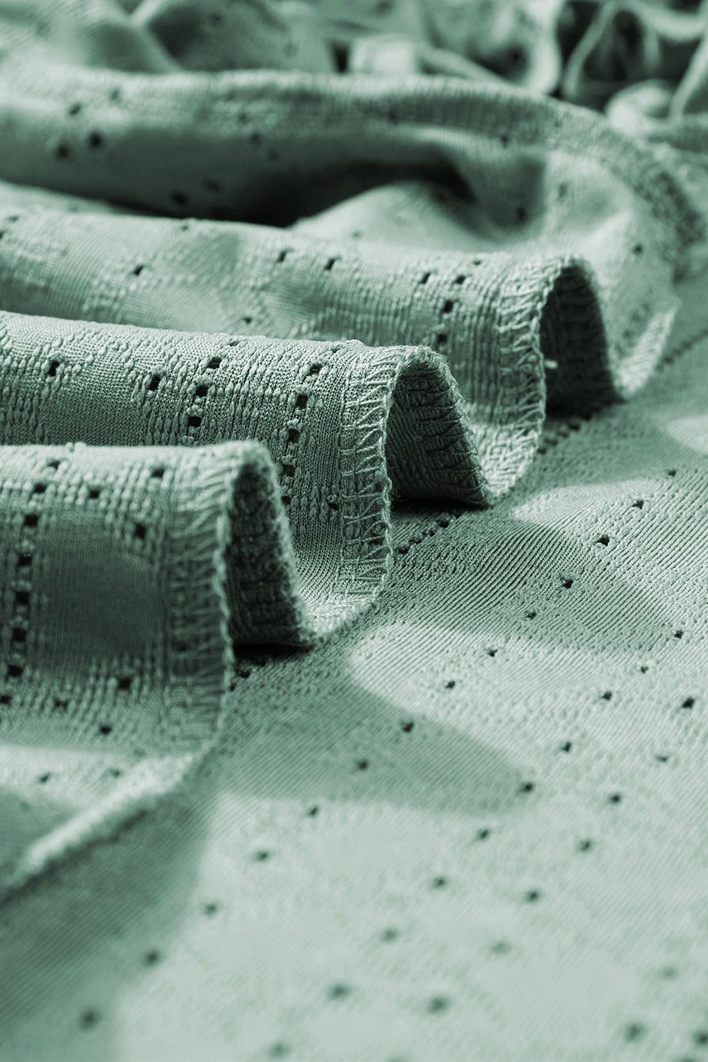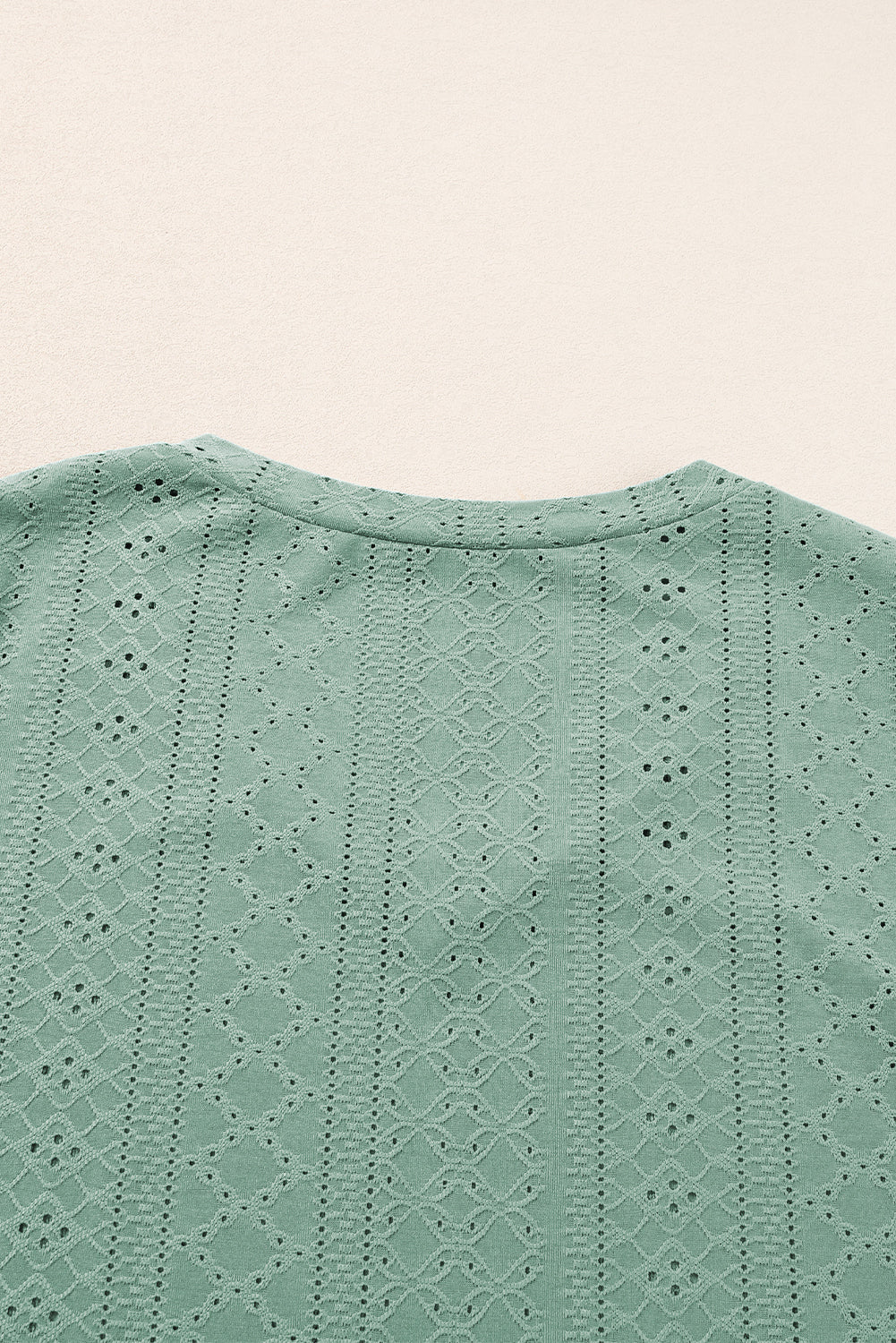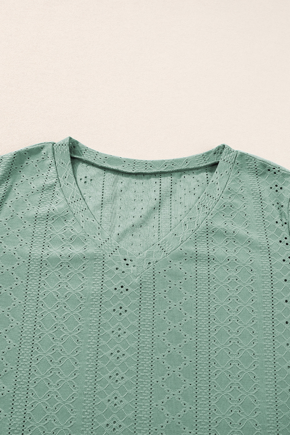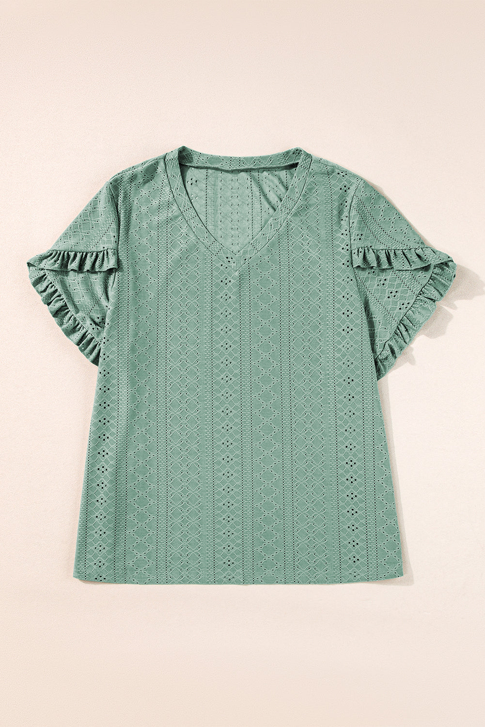 Laurel Green Petal Sleeve Jacquard V Neck Curvy Blouse