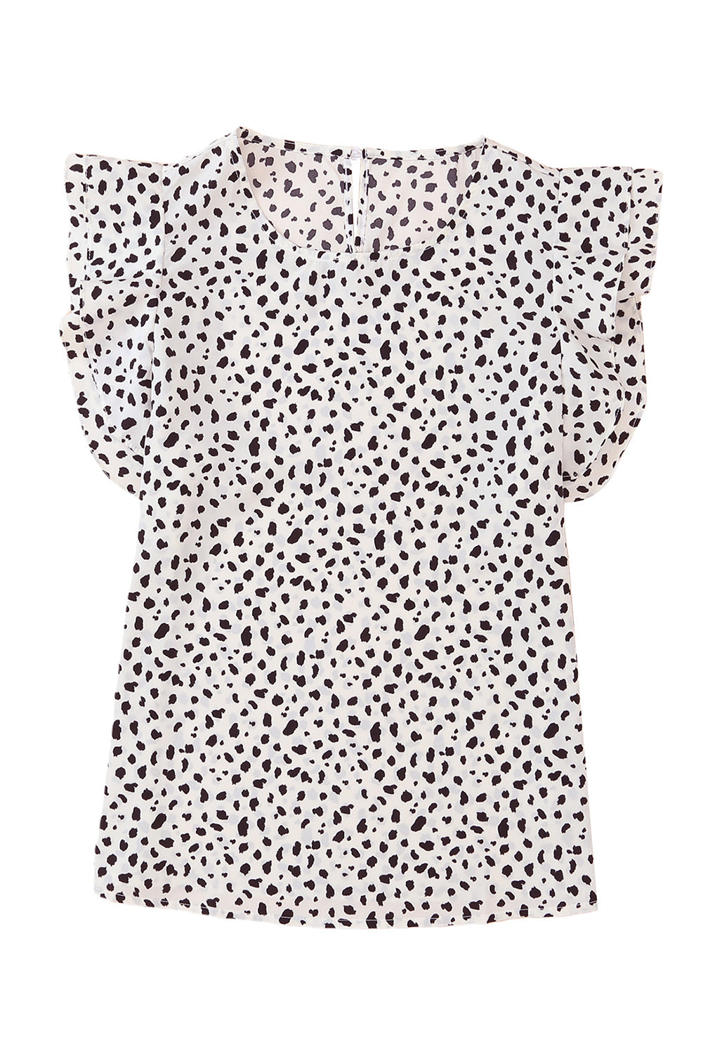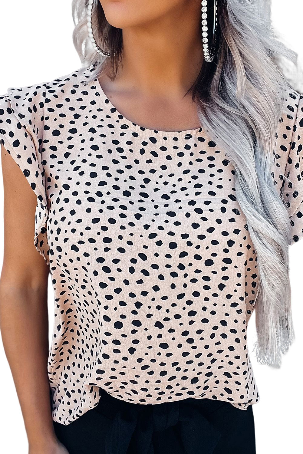 Leopard Spotted Print O-neck Ruffled Tank Top