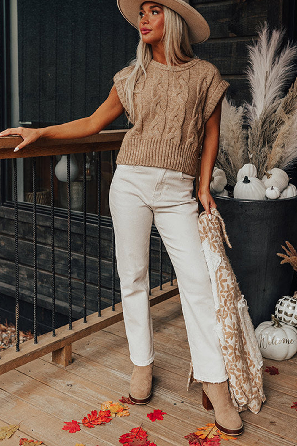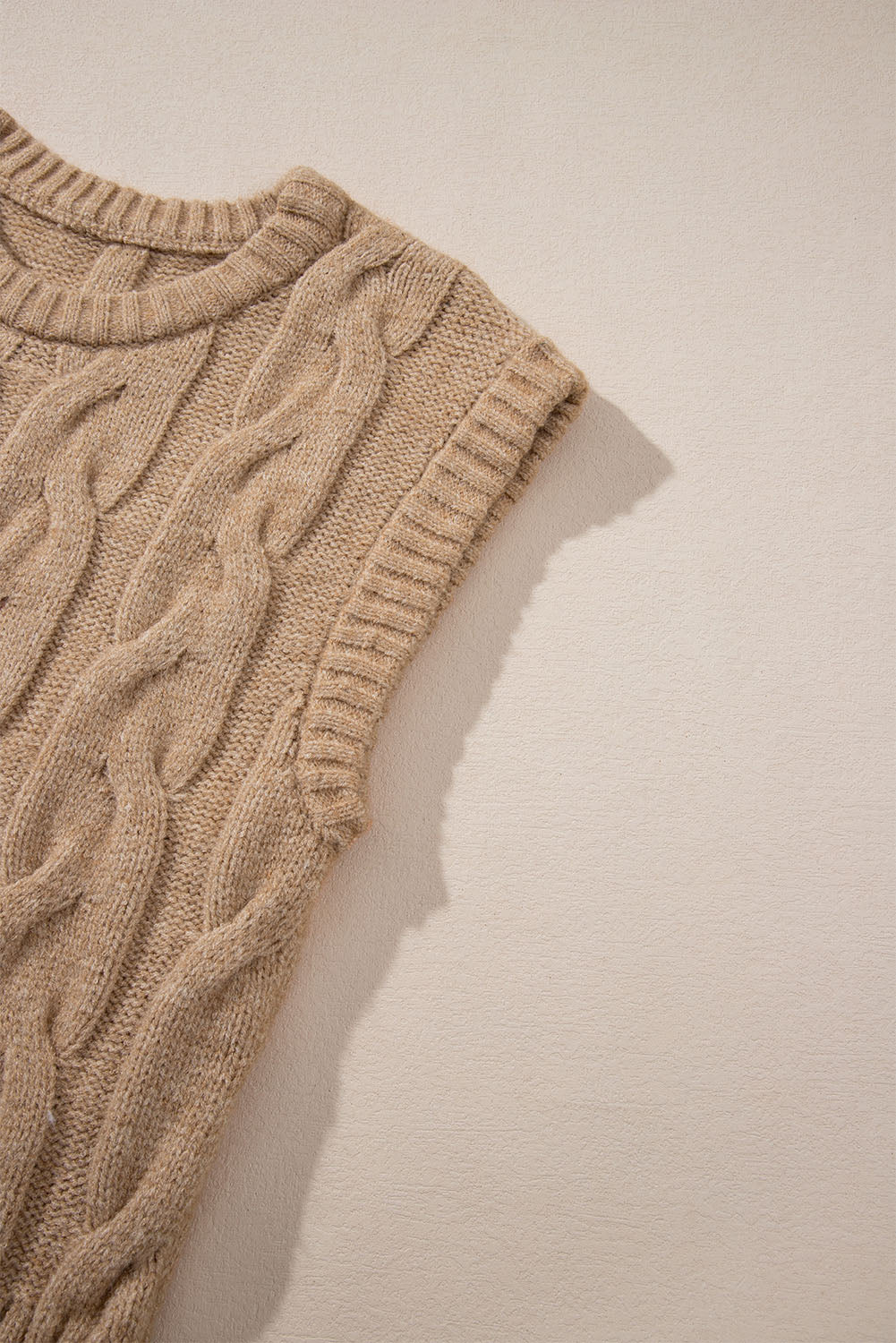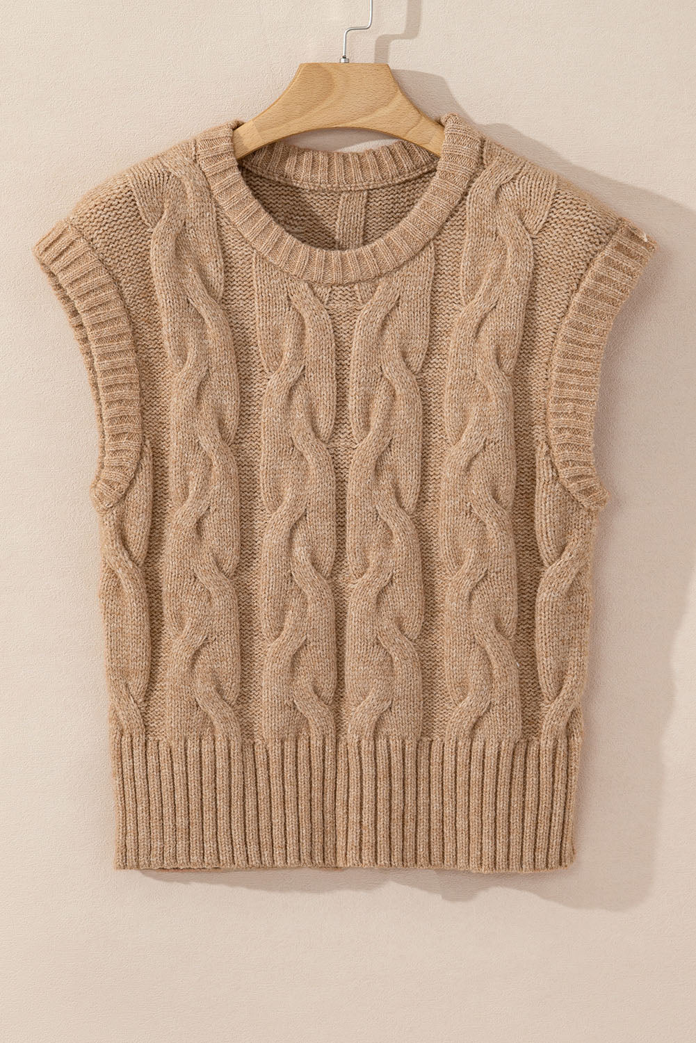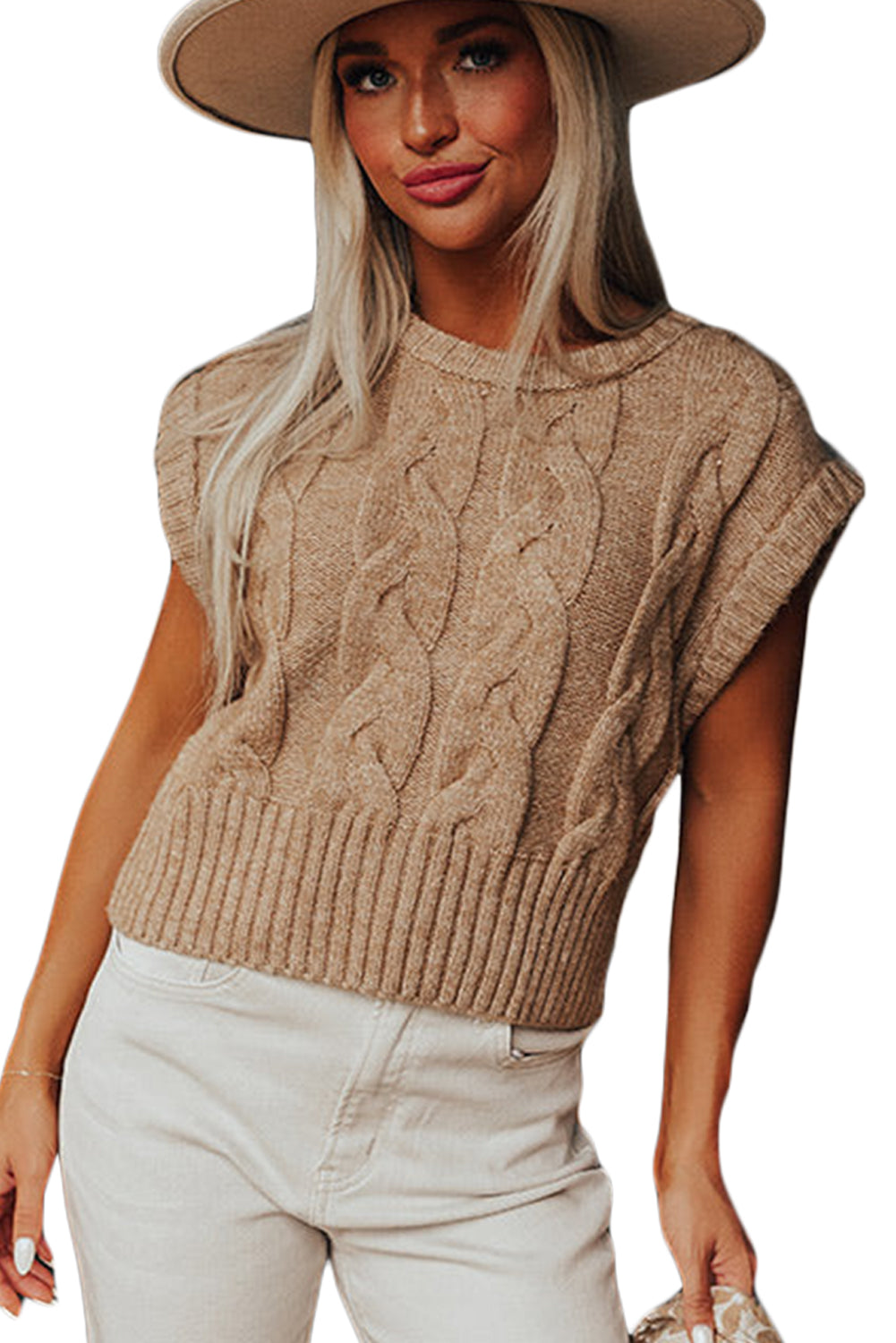 Light French Beige Cap Sleeve Cable Knit Sweater
