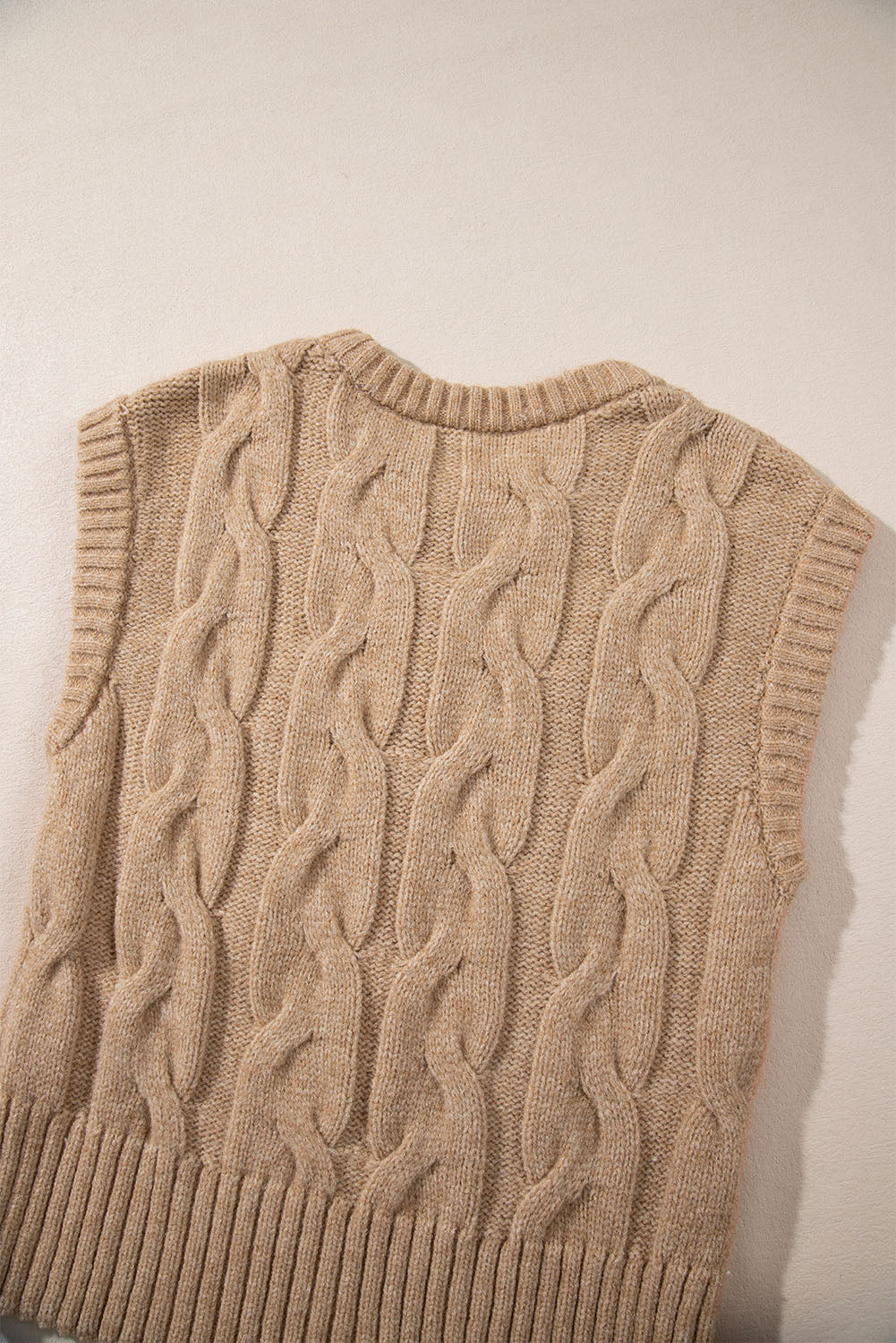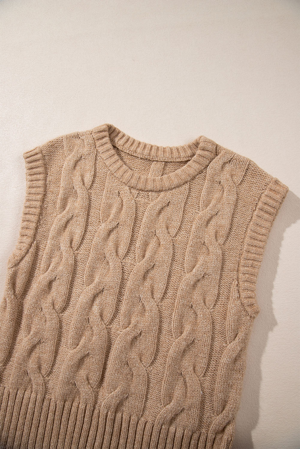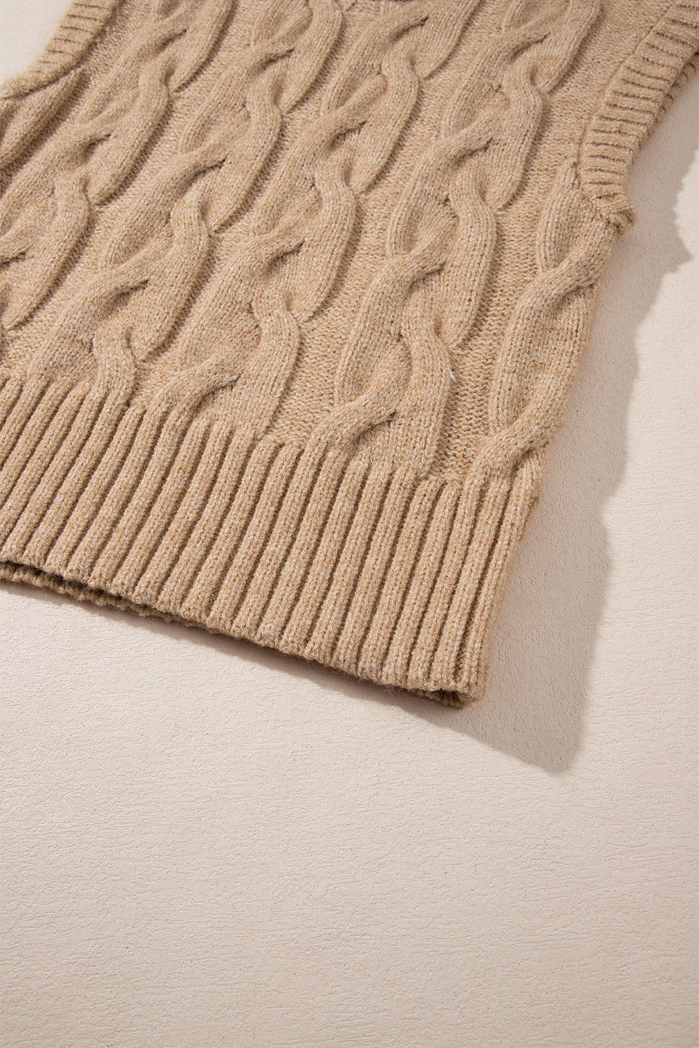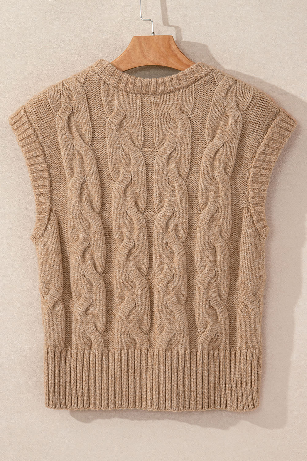 Light French Beige Cap Sleeve Cable Knit Sweater
