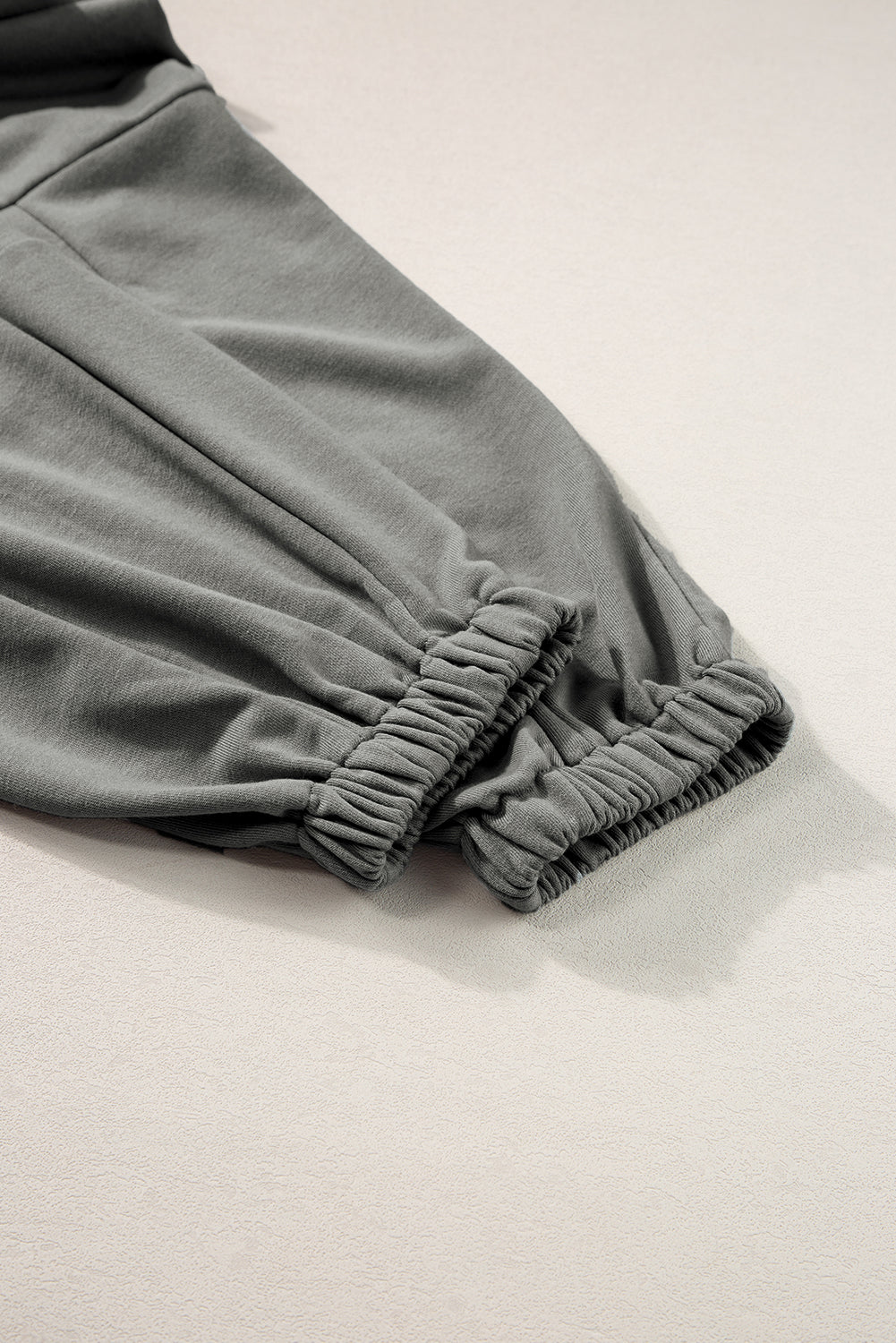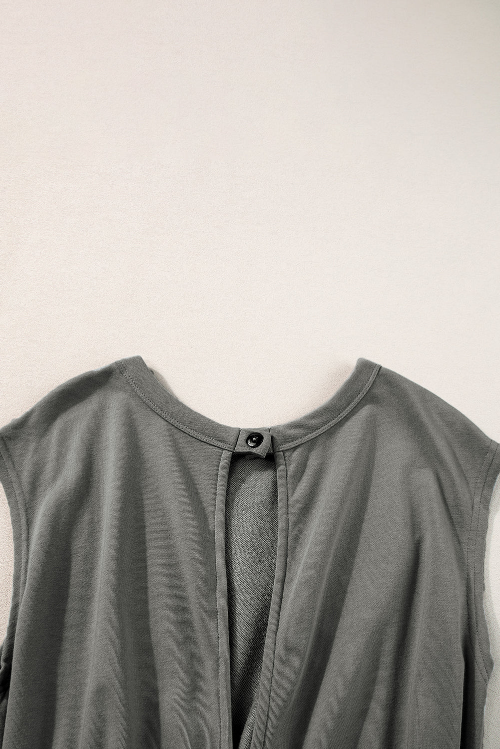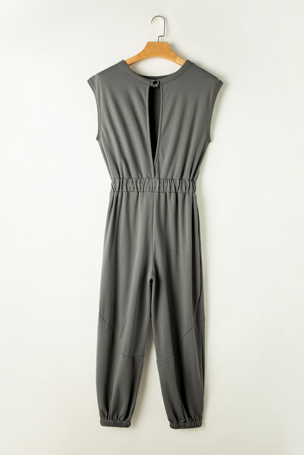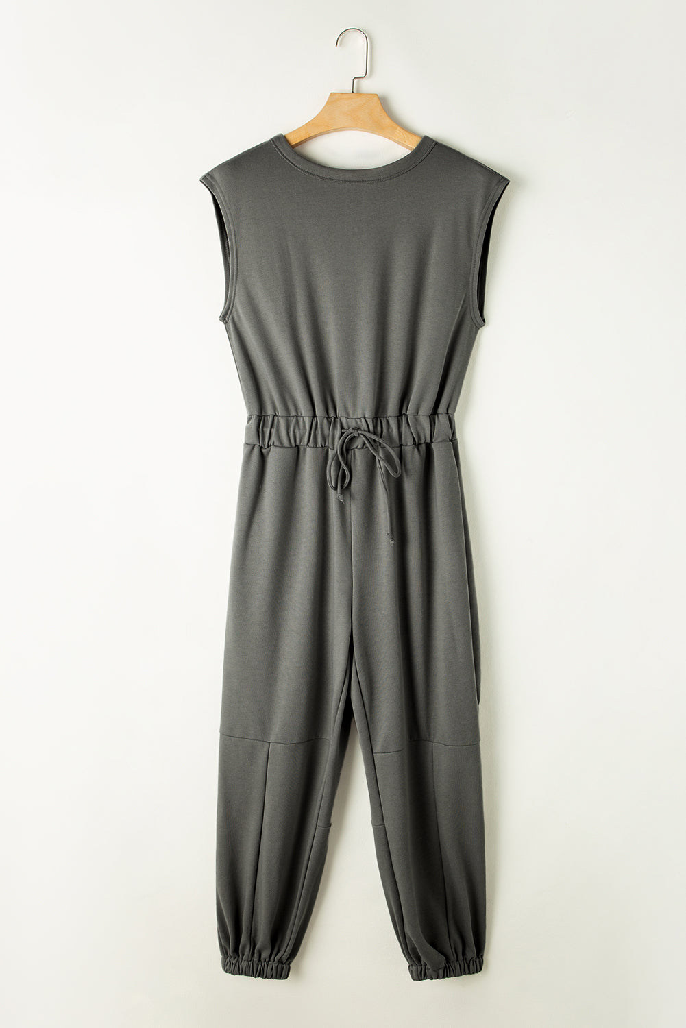 Medium Grey Cap Sleeve Open Back Drawstring Jogger Jumpsuit